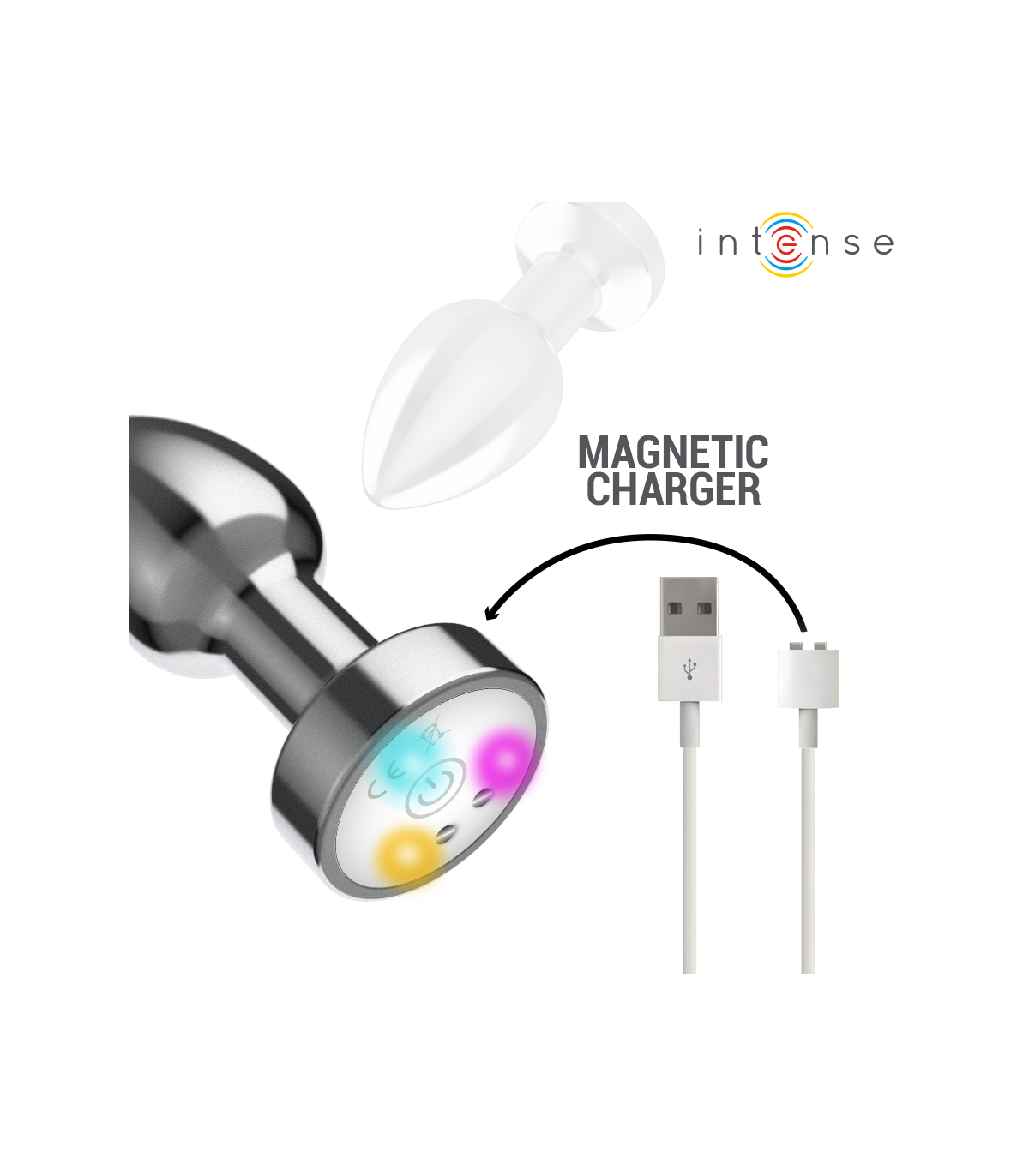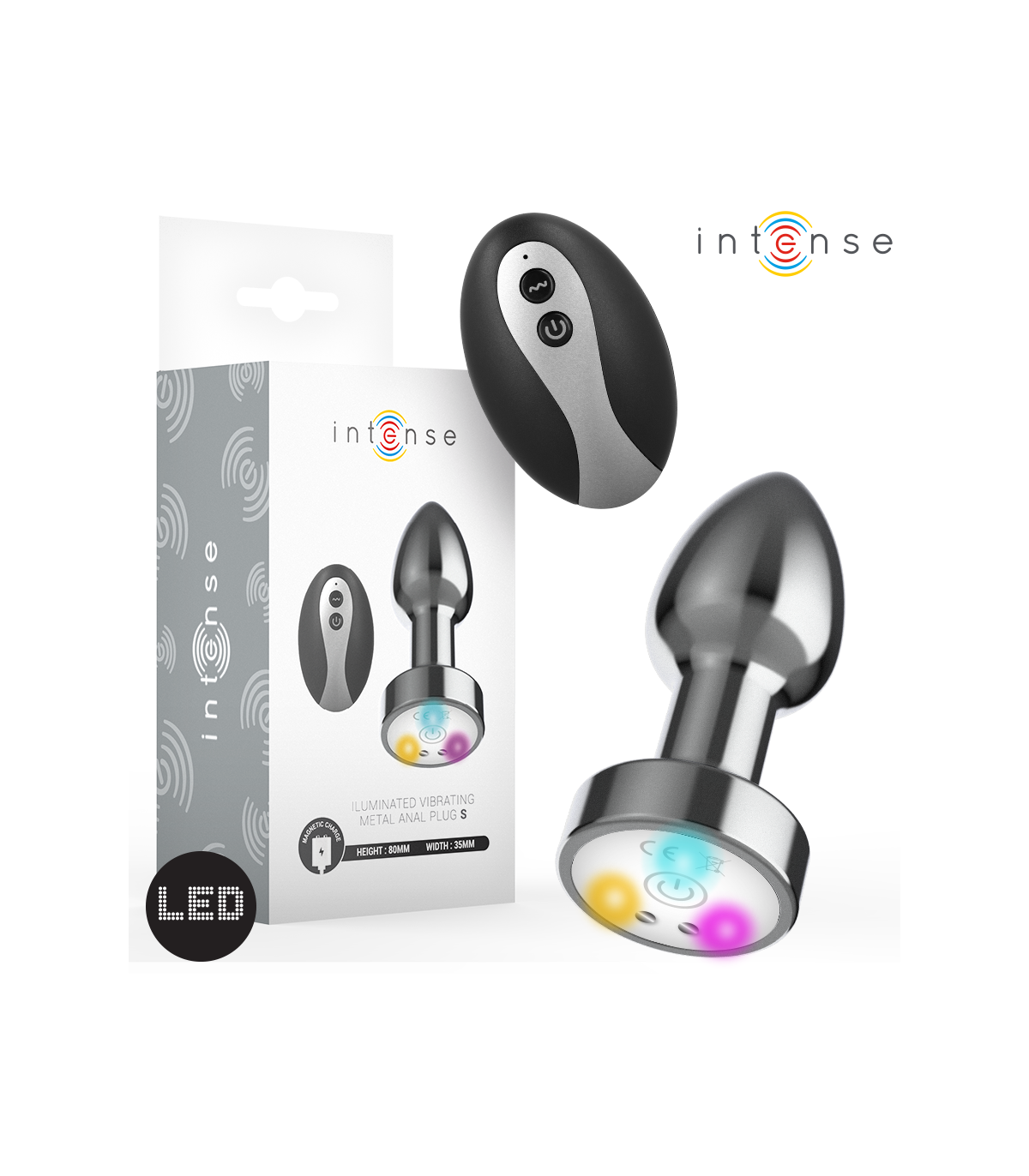Ilumina tus momentos más íntimos con el plug anal de metal vibrador con luces LED y control remoto de Intense, una joya del placer que combina elegancia, potencia y tecnología en un solo dispositivo. Diseñado para ofrecer una estimulación anal intensa y visualmente atractiva, este plug convierte cada experiencia en una mezcla perfecta de sensualidad, sofisticación y diversión.
