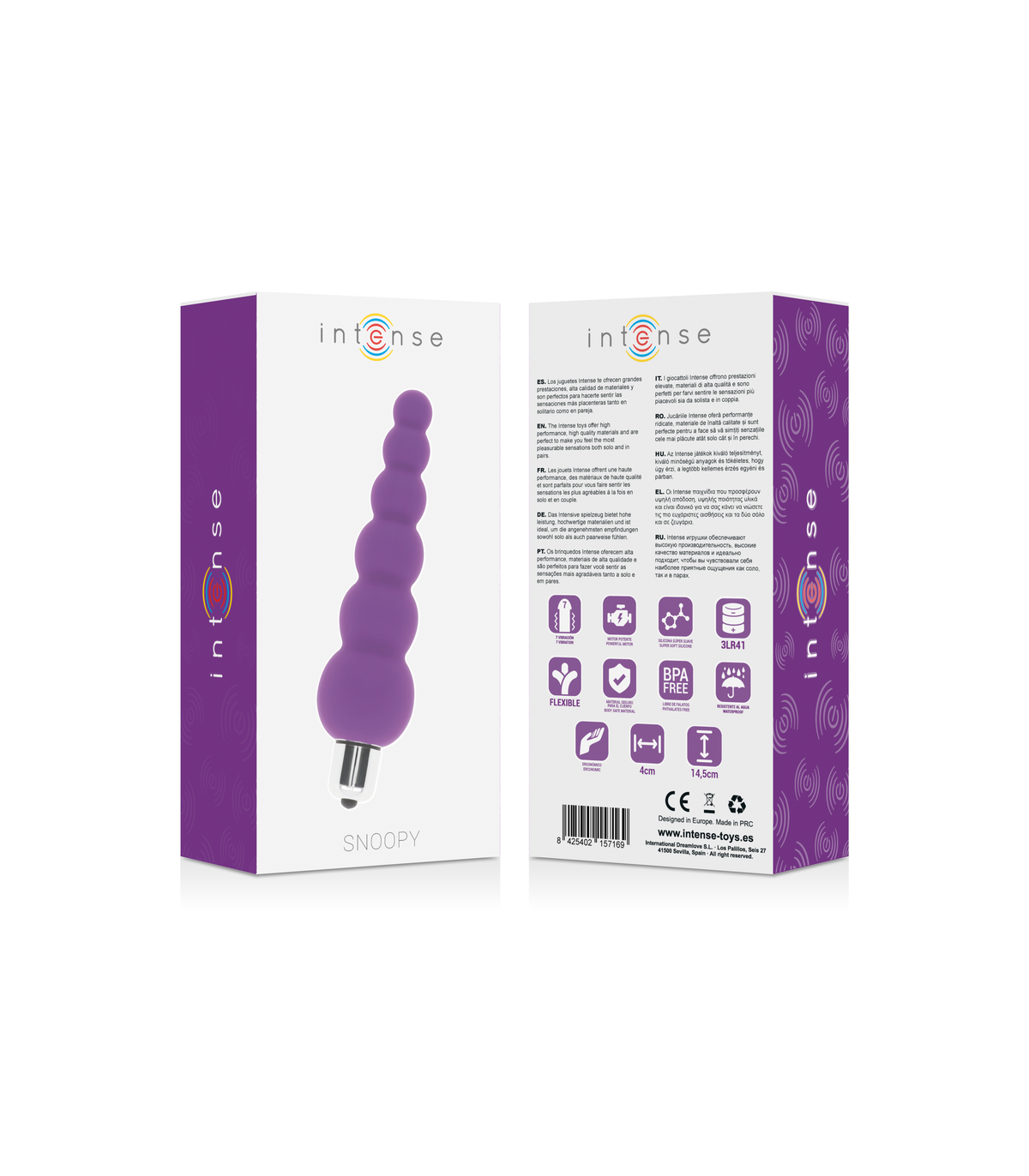 Intensifica tu placer con Intense toys, un concepto clásico que no todos consiguen hacer. Aumenta tu placer con Snoopy 100% silicona suave sedosa de grado médico es perfecto para la estimulación anal o vaginal ya que añade placer de menos a más y vibración de suave a fuerte. Ondas de placer aseguradas con Snoopy y sus 7 modos de vibración.