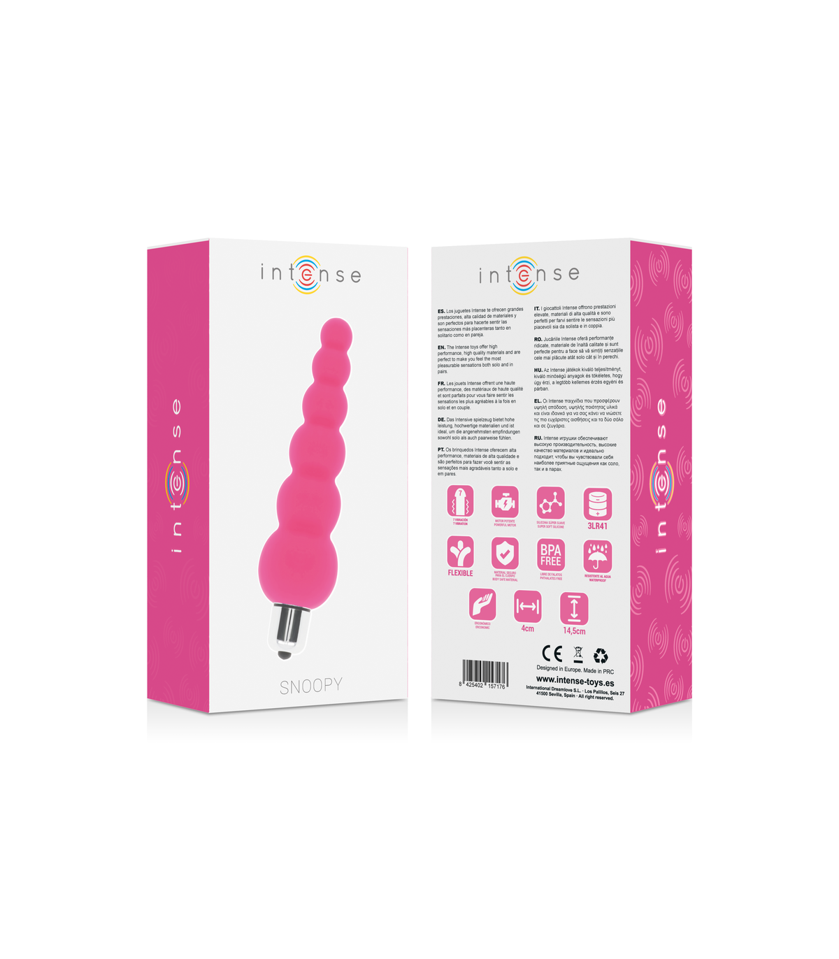 Intensifica tu placer con Intense toys, un concepto clásico que no todos consiguen hacer. Aumenta tu placer con Snoopy 100% silicona suave sedosa de grado médico es perfecto para la estimulación anal o vaginal ya que añade placer de menos a más y vibración de suave a fuerte. Ondas de placer aseguradas con Snoopy y sus 7 modos de vibración.