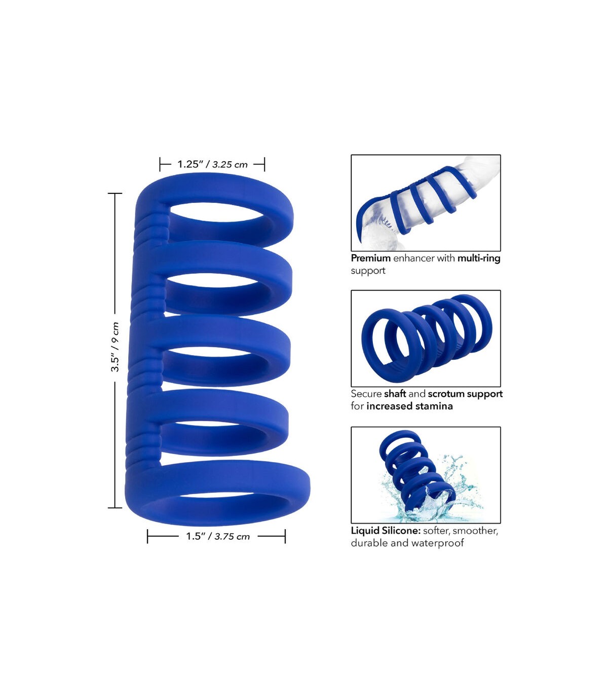 El potenciador súper elástico fue creado para aumentar la resistencia, mejorar la sensibilidad y brindar un soporte superior para la erección. Un conjunto graduado de anillos crea un soporte seguro para el eje y el escroto para un placer verdaderamente explosivo. La silicona líquida premium está hecha para ser más suave, tersa y duradera que nunca antes.