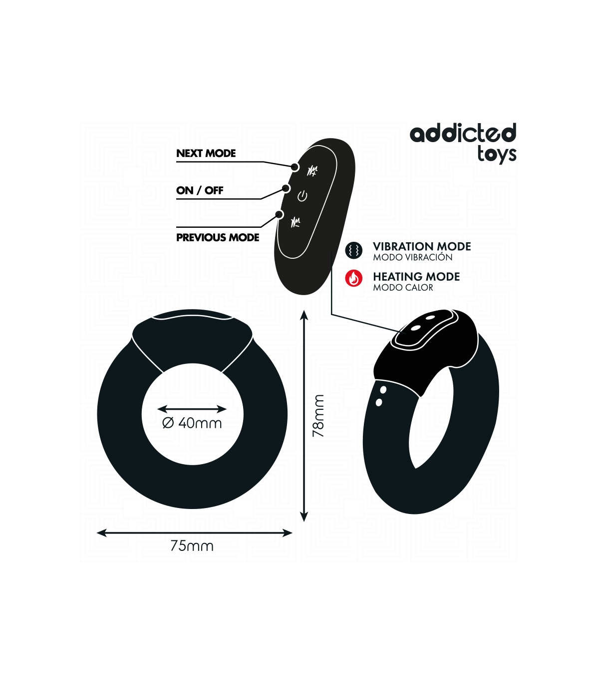Este anillo cuenta con un motor súper potente que ofrece 9 modos de vibración diferentes, desde suaves pulsaciones hasta vibraciones profundas y envolventes. Además, incorpora una función de efecto calor, que eleva la temperatura de manera gradual para imitar el calor corporal y aumentar la sensación de realismo y placer durante el uso.