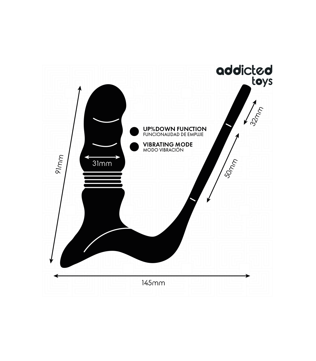 Su diseño curvado está pensado para ajustarse de forma natural a la anatomía, favoreciendo una estimulación precisa y confortable. Incorpora una base ancha y estable que garantiza un uso seguro, así como un anillo de agarre integrado que facilita el control durante el uso.