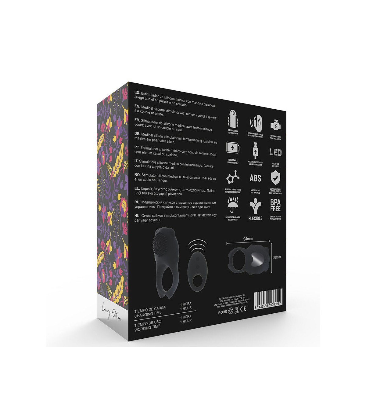 Con el práctico mando a distancia podéis controlar la vibración con comodidad y decidir quién puede tomar las decisiones. Para aventuras salvajes y preliminares excitantes el hombre también puede llevar el anillo vibrador en el pene y dejar que su compañero/a lo excite.