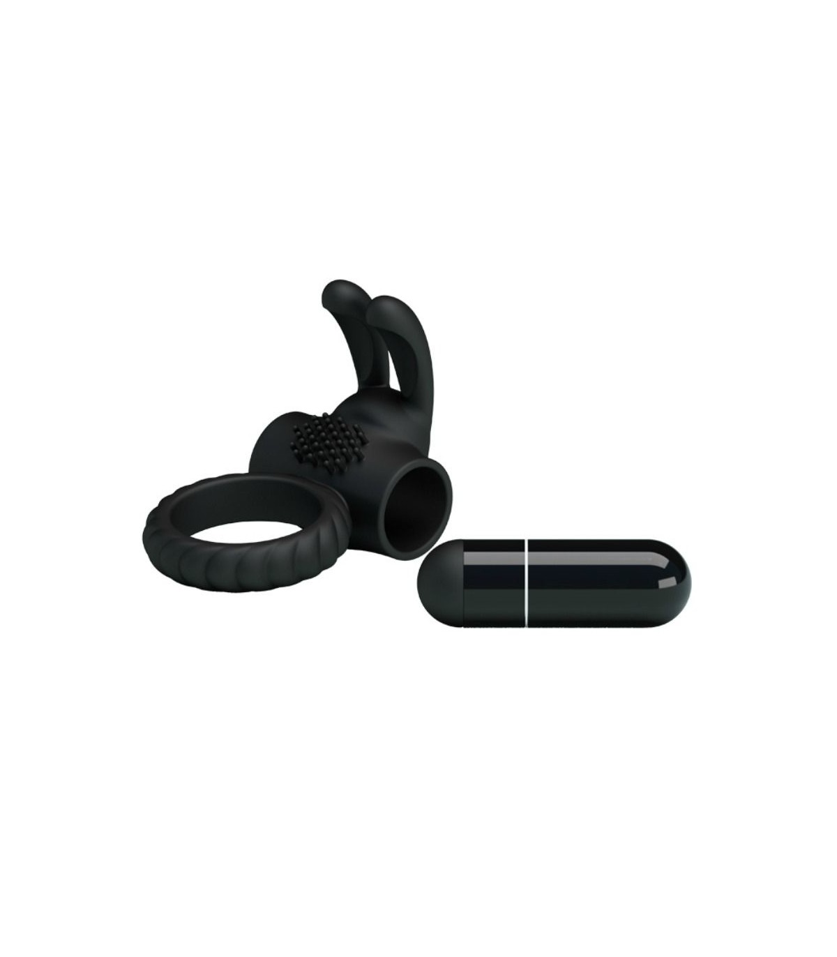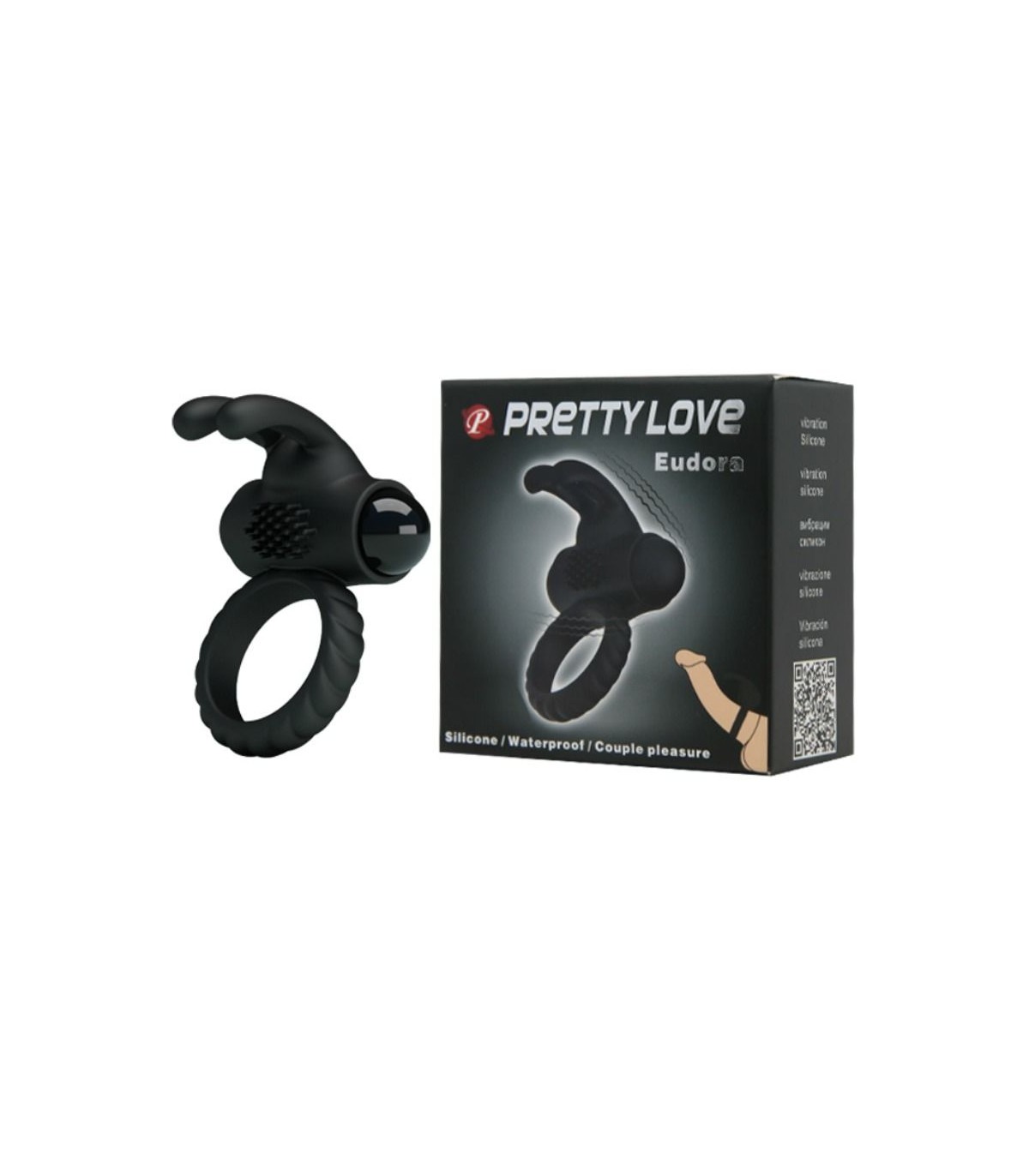 Eudora de Pretty Love, es un anillo vibrador de calidad inigualable, fabricado con la silicona de más alta calidad, se acciona mediante una bala vibradora que dispone de facil uso y posee rabbit para estimulación clitorial. Ideal para para que los dos aumenteis el placer en vuestras relaciones.