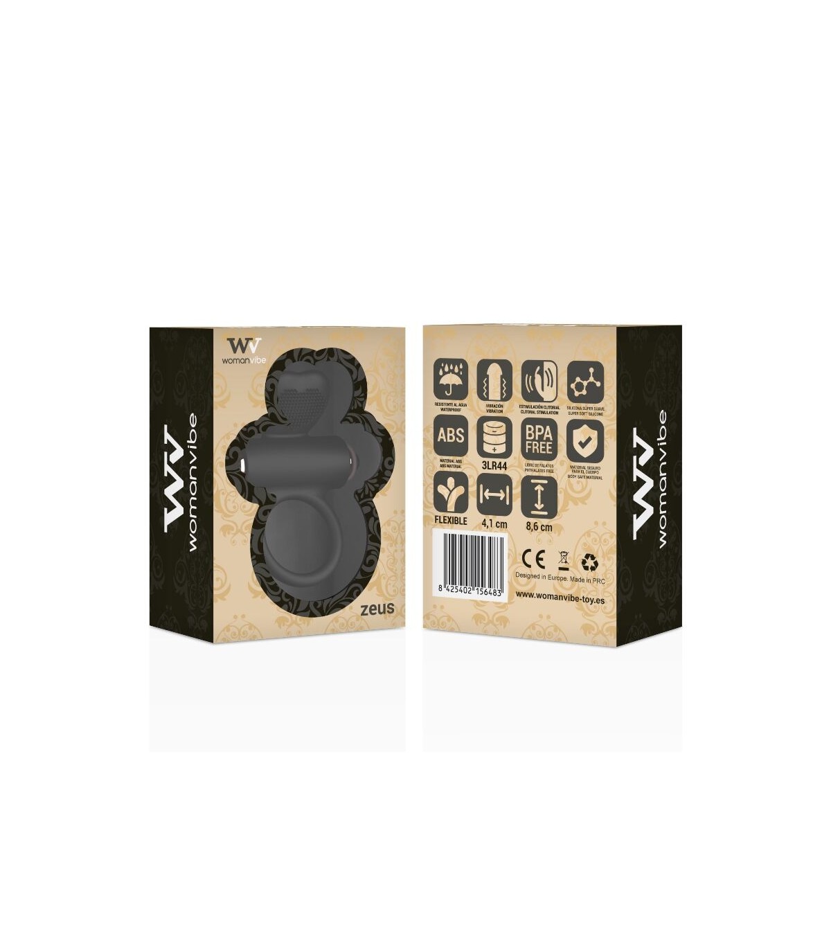 Womanvibe presenta a Zeus, el anillo directamente al corazón de tu amante! , Perfectamente cubierto con una suave y sedosa superficie de silicona. Alcanza las 11.000 rpm convirtiéndolo en el galán de la vibración, potente y silenciosa.