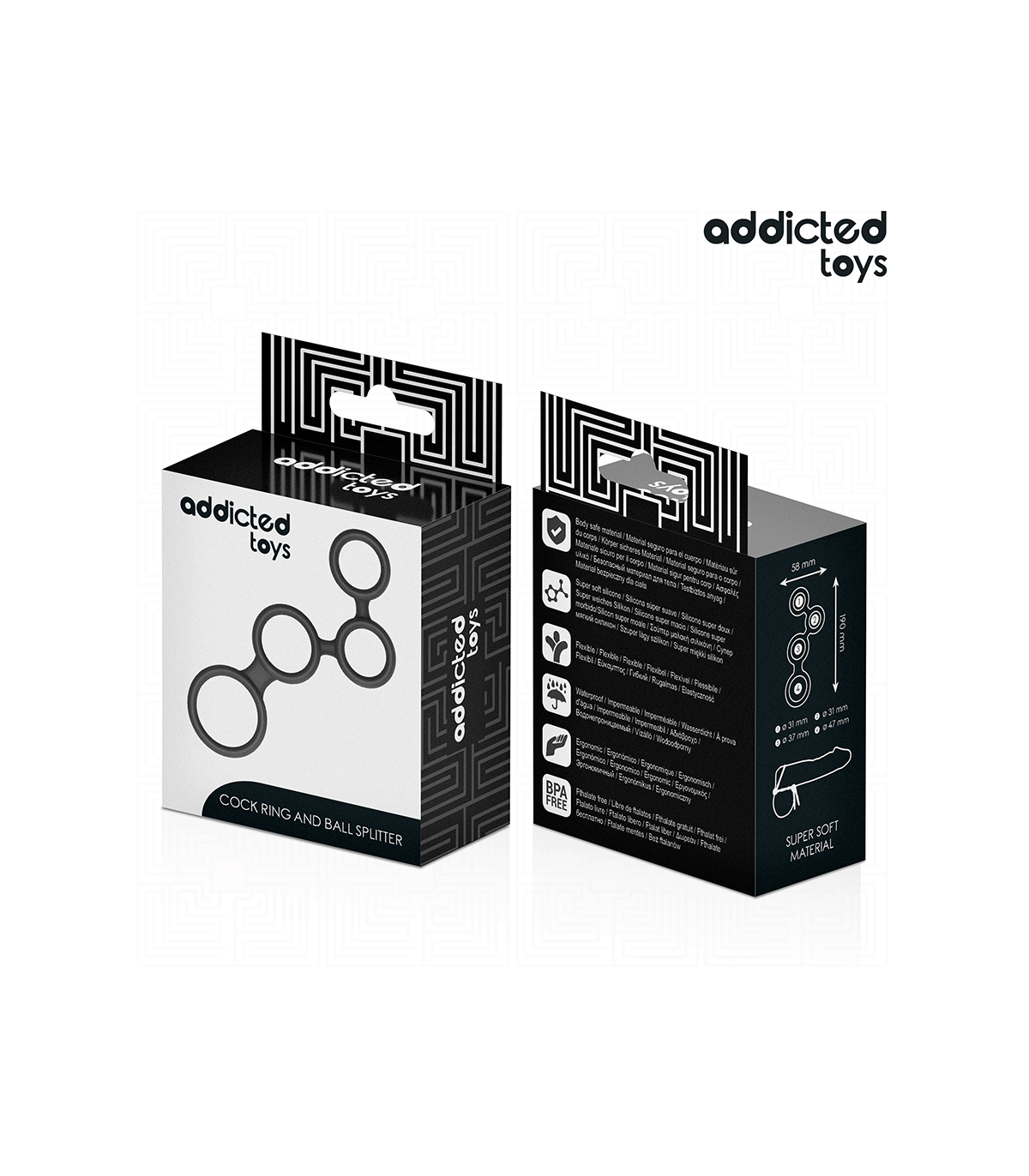 El anillo para el pene con divisores para testículos Addicted Toys está diseñado para proporcionar un ajuste firme y seguro, mejorando la erección y aumentando la estimulación al dividir los testículos en secciones individuales. Su diseño con múltiples anillos permite una colocación versátil, proporcionando diferentes niveles de presión para intensificar la experiencia.