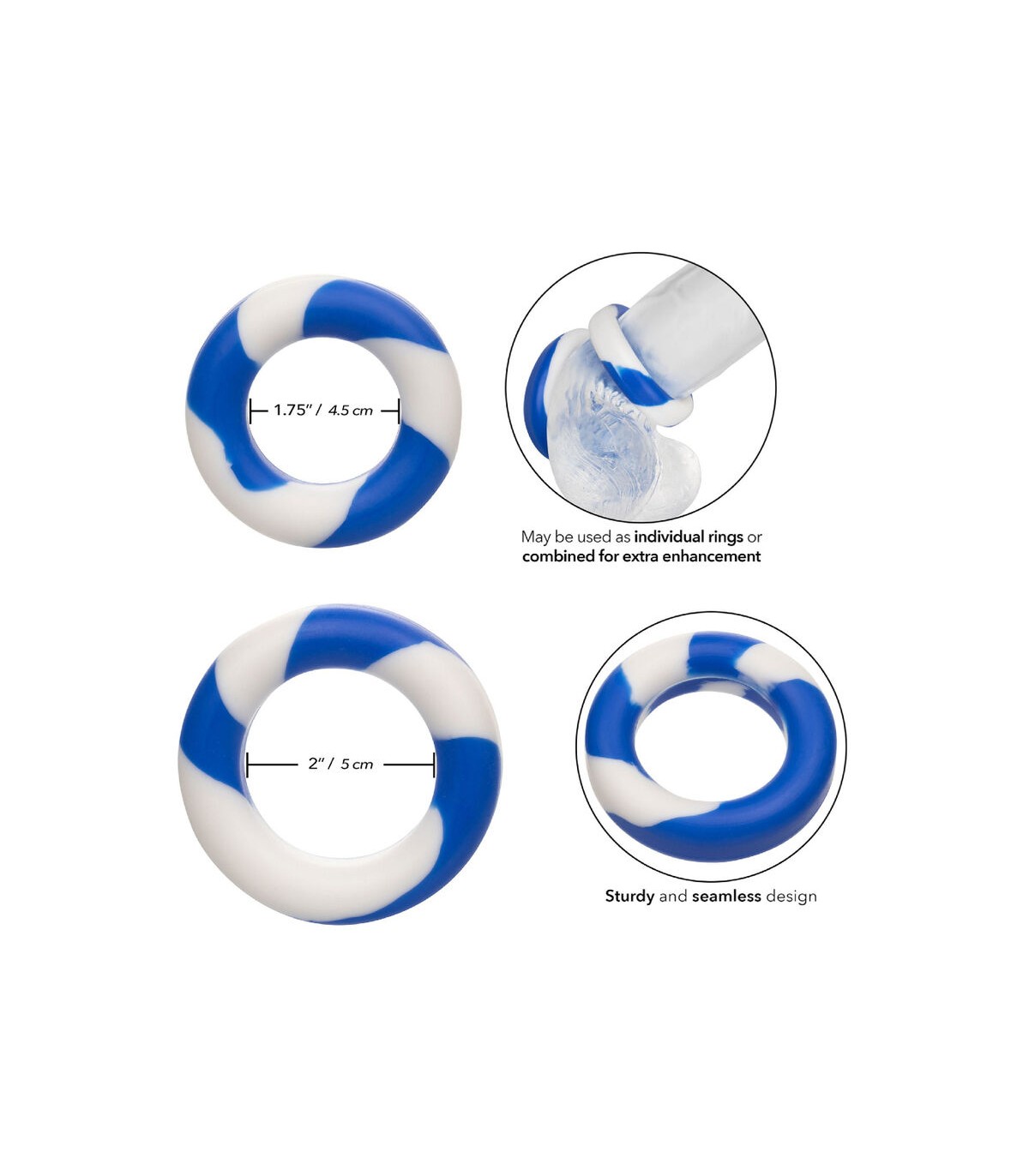 Explora un placer y rendimiento elevados, ya sea aumentando la resistencia o intensificando las sensaciones. Prioriza la sensibilidad aumentada y el placer prolongado con este versátil y efectivo conjunto de anillos Admiral 2, que se adapta a tus deseos y eleva tus experiencias íntimas.