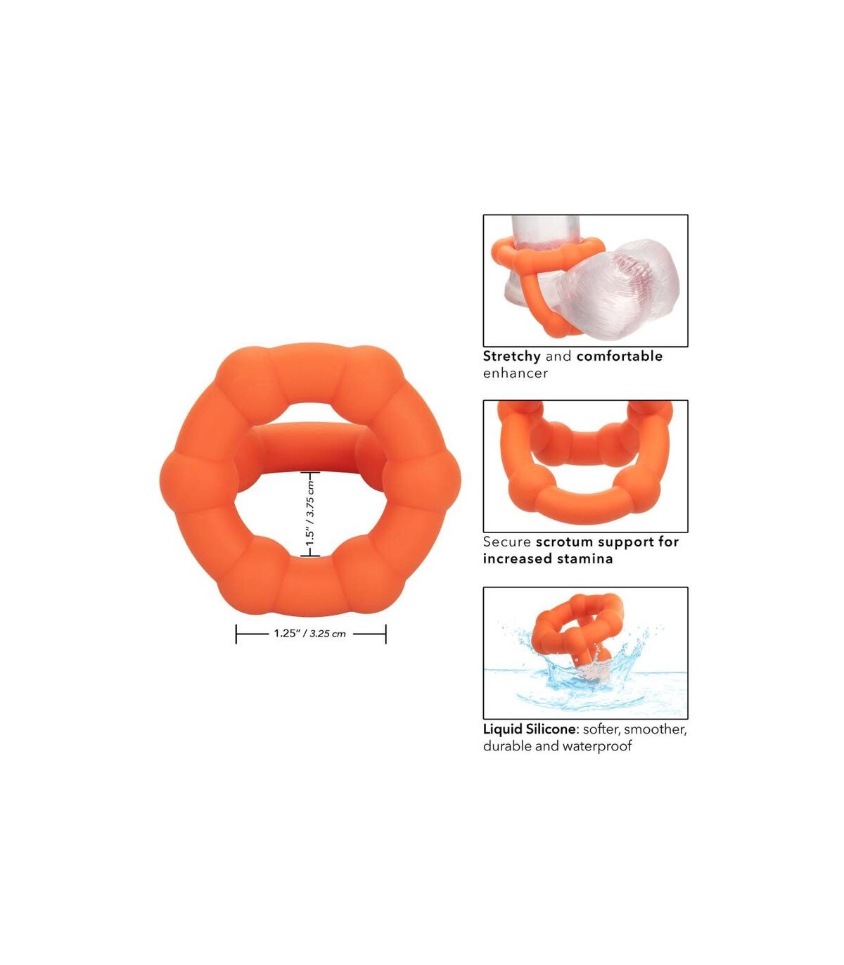 Desde principiantes boquianos hasta expertos eróticos, el anillo de Star Liquid Silicone Allicone Alpha lo envolverá con el placer con el anillo de potenciador ultra lujoso y ultra elástico. El anillo juguetón está hecho de una silicona líquida ultra estirada con un diseño atrevido de doble anillo y acentos de cuentas únicos. Este anillo de polla elástico y cómodo está hecho para aumentar la resistencia, mejorar la sensibilidad y ofrecer un soporte de erección superior. El anillo de soporte de escroto duradero le permite disfrutar aún más en una resistencia aumentada. Busque una experiencia de placer explosiva mientras el lujoso anillo se aprieta con cada movimiento. La silicona líquida premium es suave, lisa, duradera e impermeable .
