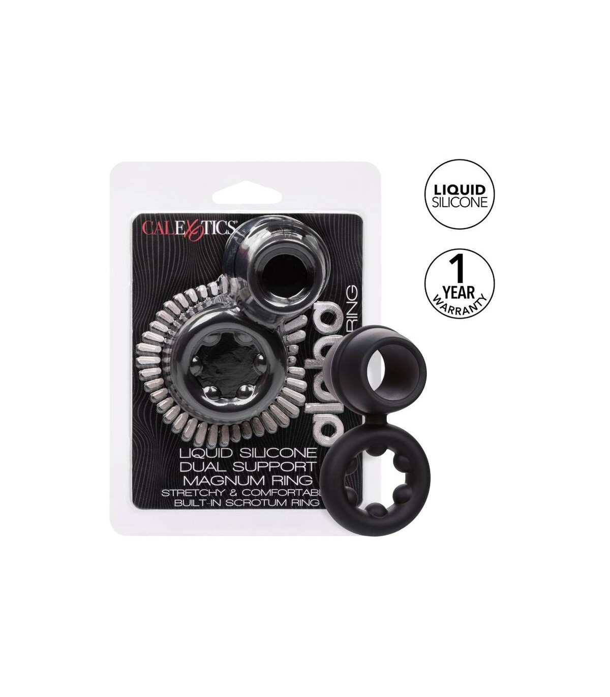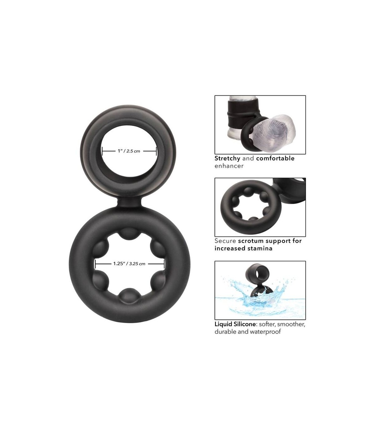 Desde principiantes boquianos hasta expertos eróticos, el anillo de doble magnum de silicona líquida alfa lo envolverá con el placer con el anillo de potenciador ultra lujoso y ultra elástico. El anillo juguetón está hecho de una silicona líquida ultra estirada con un diseño atrevido de doble anillo. Este anillo de polla elástico y cómodo está hecho para aumentar la resistencia, mejorar la sensibilidad y ofrecer un soporte de erección superior. El anillo de soporte de escroto duradero le permite disfrutar aún más en una resistencia aumentada. Busque una experiencia de placer explosiva mientras el lujoso anillo se aprieta con cada movimiento. La silicona líquida premium es suave, lisa, duradera e impermeable .