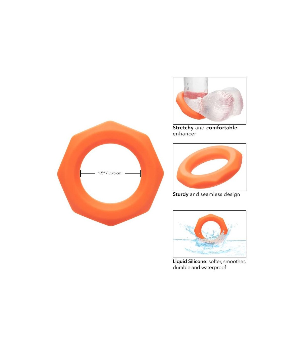 Desde principiantes boquianos hasta expertos eróticos, el anillo Alpha Liquid Silicone Sexagon te envolverá con el placer con el anillo ultra lujoso y ultra elástico. El anillo juguetón está hecho de una silicona líquida ultra estirada con un diseño hexágono único. Este anillo de polla elástico y cómodo está hecho para aumentar la resistencia, mejorar la sensibilidad y ofrecer un soporte de erección superior. Busque una experiencia de placer explosiva mientras el lujoso anillo se aprieta con cada movimiento. La silicona líquida premium es suave, lisa, duradera e impermeable .
