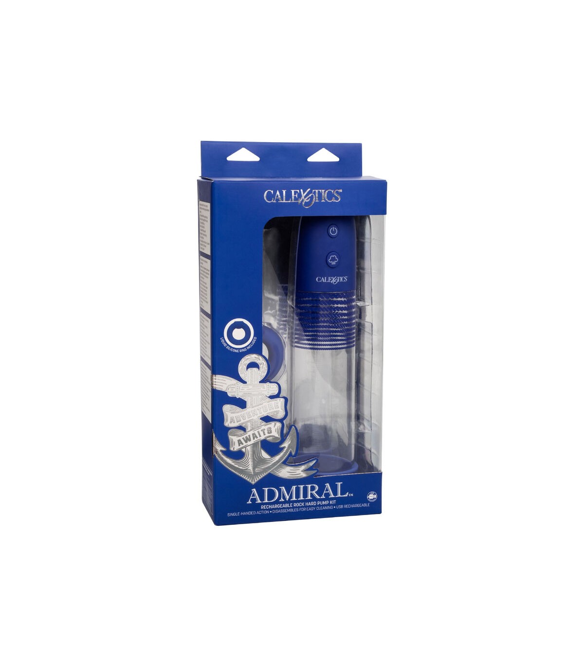 Amplíe sus horizontes sexuales y explore nuevos deseos con el kit de bomba dura como una roca recargable Admiral, una elegante bomba automática con anillo potenciador de silicona líquida.