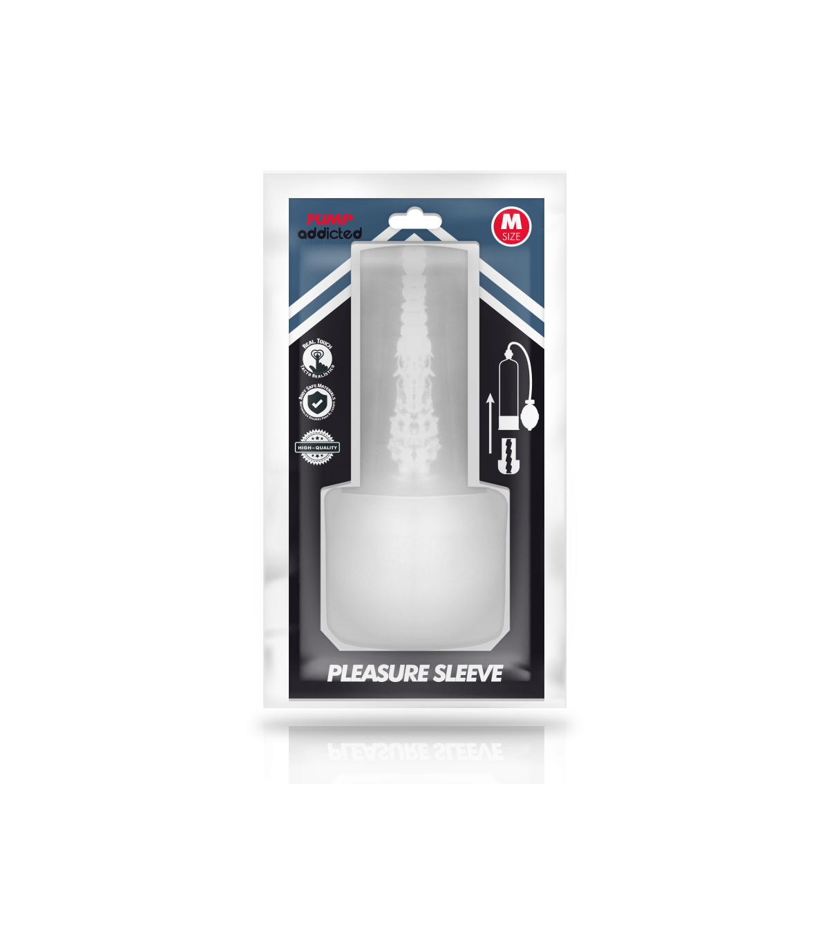 ¡Te encanta verte en acción, y ahora puedes hacerlo con el masturbador pleasure Sleeve mientras utilizas tu PUMP ADDICTED! Presta atención a como cada centímetro de tu pene penetra este masturbador transparente ultra estrecha y has realidad tus perversas fantasías más voyeuristas. Tendrás la sensación de estar penetrando una suave vagina o ano (según el modelo) y además podrás observar como el masturbador transparente de acaricia con su textura interior creando un efecto de succión, aumentando tu estimulación y masajeando tu pene con cada golpe, mientras que el realístico material con el que está fabricado (TPE) envuelve cada milímetro de tu pene como un amante real. Hazle el amor a esta vagina hasta que explotes, para a continuación ver como fluyen tus fluidos en su interior.