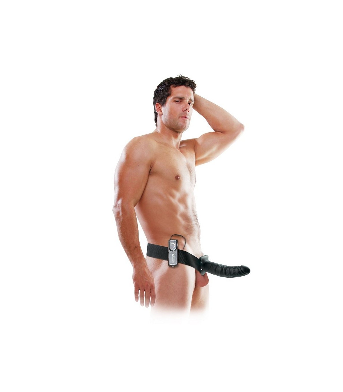 Es un fantástico arnés vibrador hueco para hombre en color negro.