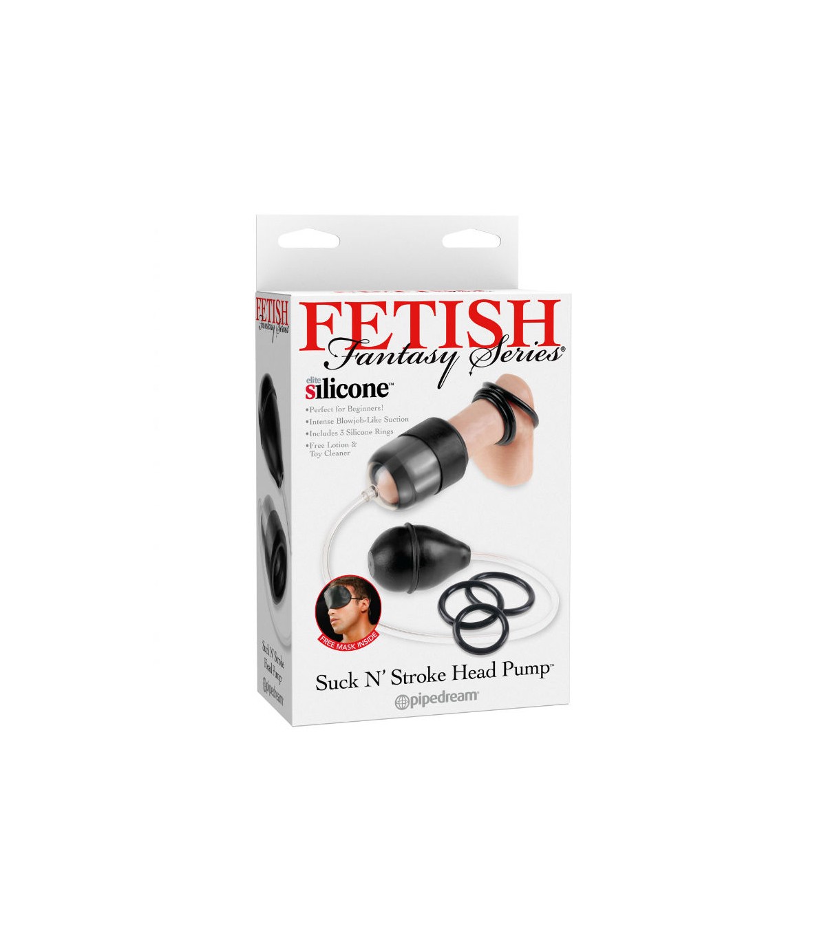 ppEl Suck N Stroke Head Pump es un simulador de felaciones y proporciona una poderosa accion de succion que estimula las terminaciones nerviosas del glande ppElige un anillo primero deslizalo sobre la manga dobla la manga sobre el cilindro inflador y disfruta de un sello hermetico sobre el glande Cada vez que se presione la bola infladora la goma de la manga se agarra al miembro y se desliza arriba y abajo sobre el ppUsa una gran cantidad de lubricante MoistR para mayor lubricacion ppEl kit incluye pulliHinchador de bola estilo medico de PVC liliManga super estrecha liliCilindro de ABS lili3 anillos de silicona liliAntifaz liliLociones liliLimpiador de juguetespDimensiones pulliManga 12465 mm x 5853 mm x 277 mm liliCilindro 8179mm x 527mm x 209 mm liliTubo 444 mm x 587mm x 164 mm liliDiametros anillos 30 mm x 40 mm x 50 mmpIncluye mascara de regalo pp styletext align center