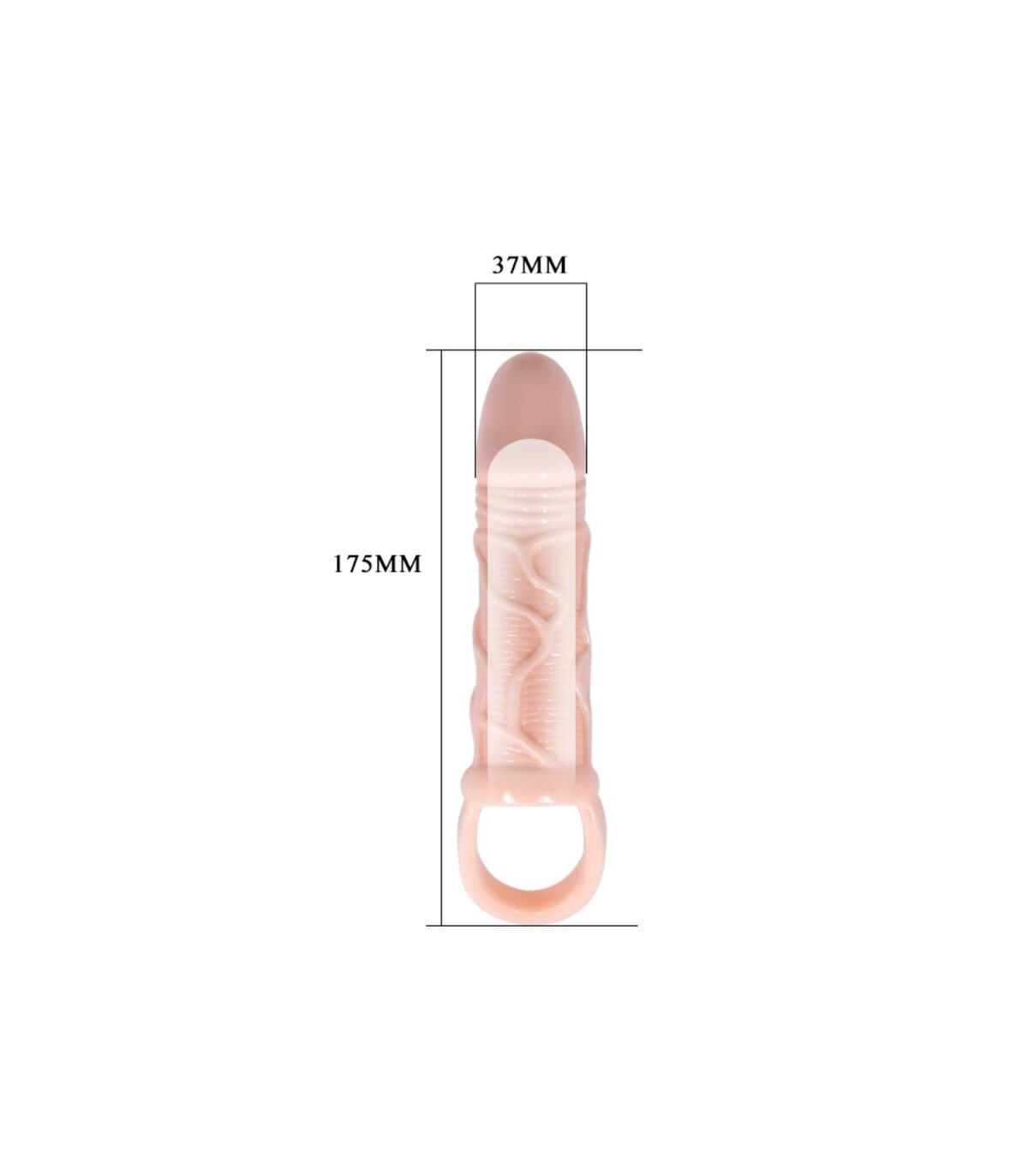 Funda extensora de pene con strap para los testiculos para que aumente tanto en grosor como en longitud y así aumentar el placer de ambos durante las relaciones. Tiene un diseño realístico y funcional ya que los relieves de los contornos sirve como estimulante para tu pareja y está fabricado en TPR de alta calidad.