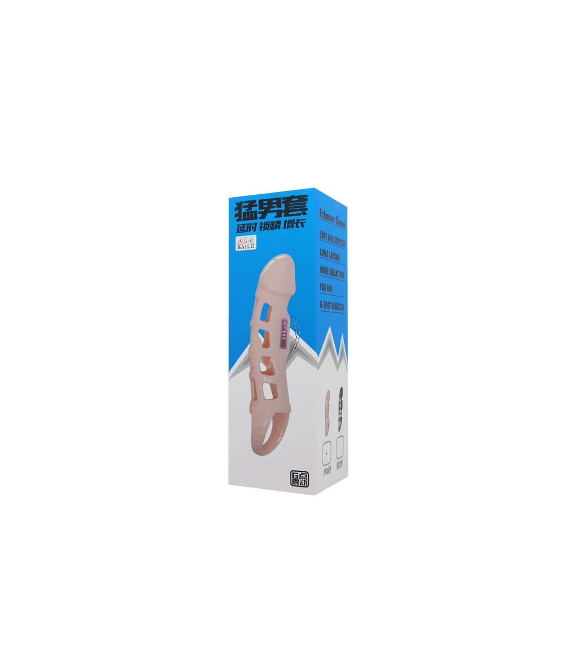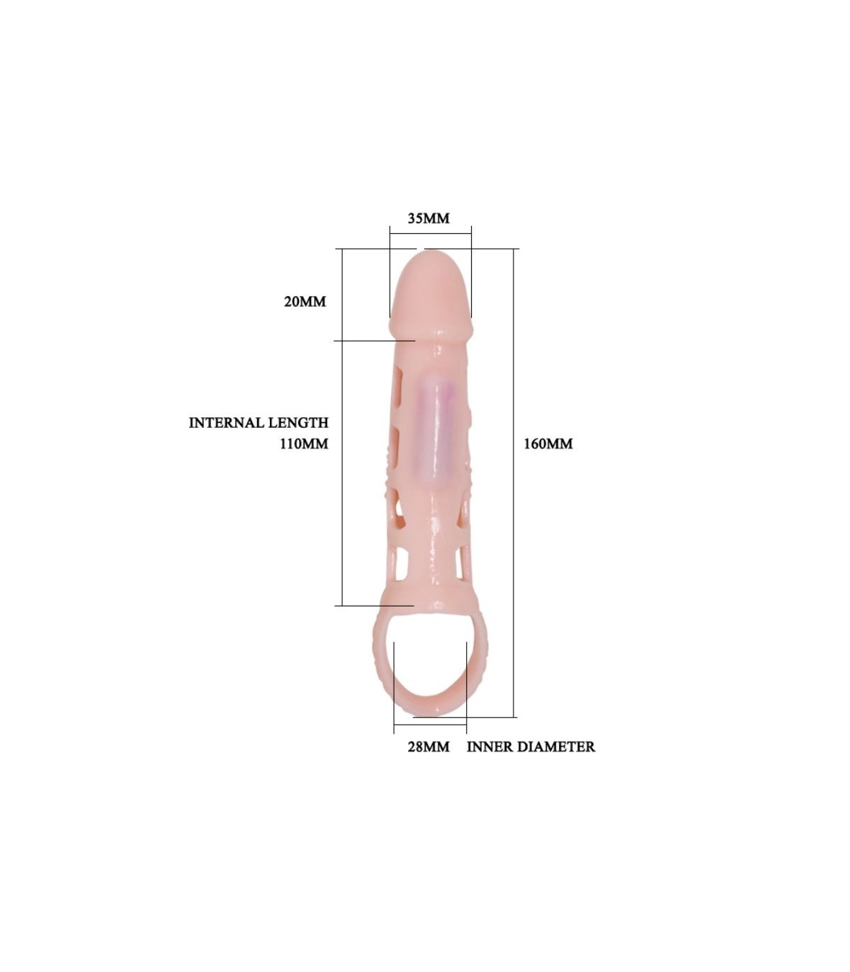 BAILE - FUNDA EXTENSORA PENE CON VIBRACIÓN Y STRAP NATURAL 13.5 CM
