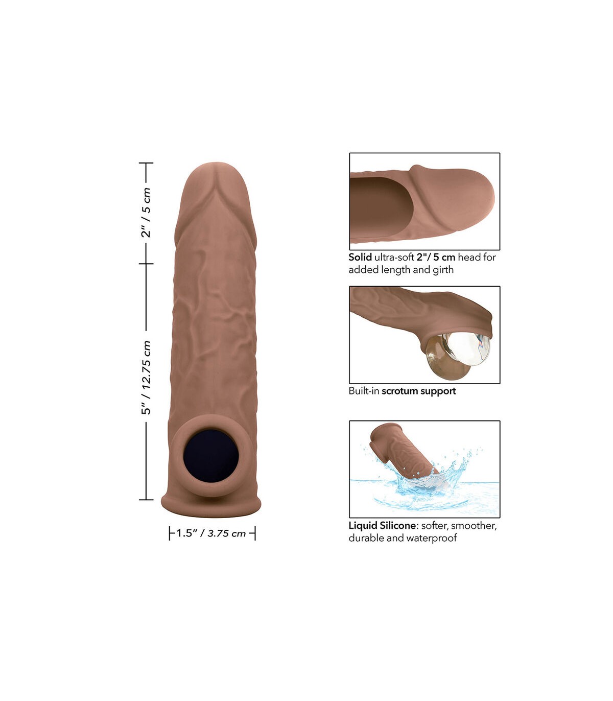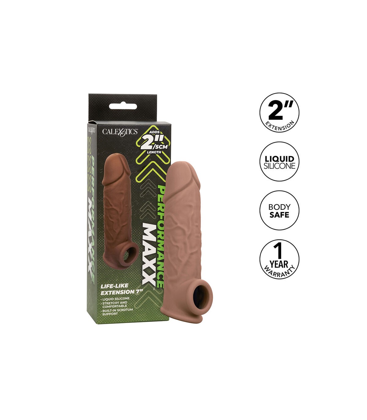 Llévelo a nuevas longitudes con la extensión Performance Maxx Life-Like de 7”. La funda realista con diseño hueco agrega 2 pulgadas 5 cm a su longitud para una experiencia de placer mejorada. La correa para el escroto incorporada y la funda gruesa brindan mayor soporte para la erección y mayor resistencia para prolongar e intensificar el placer para ambos socios. Aumente su placer y nunca se conforme con menos cuando se trata de tamaño, nuestro extensor súper elástico con correa de soporte para el escroto hará que usted y su amante anhelen más, más, más. Nuestro potenciador súper elástico se estira para adaptarse y facilitar su uso. La silicona líquida de primera calidad no tiene perfume, ftalatos y no necesita mantenimiento para mantener los puntos más sensibles felices y saludables.
