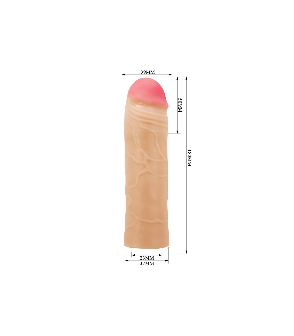 Aumente el tamaño de su pene con el extensor de pene de placer. Hecha de material ultra realista para un placer ultra realista, esta funda le brinda 2 pulgadas adicionales de largo, 35 % de circunferencia.