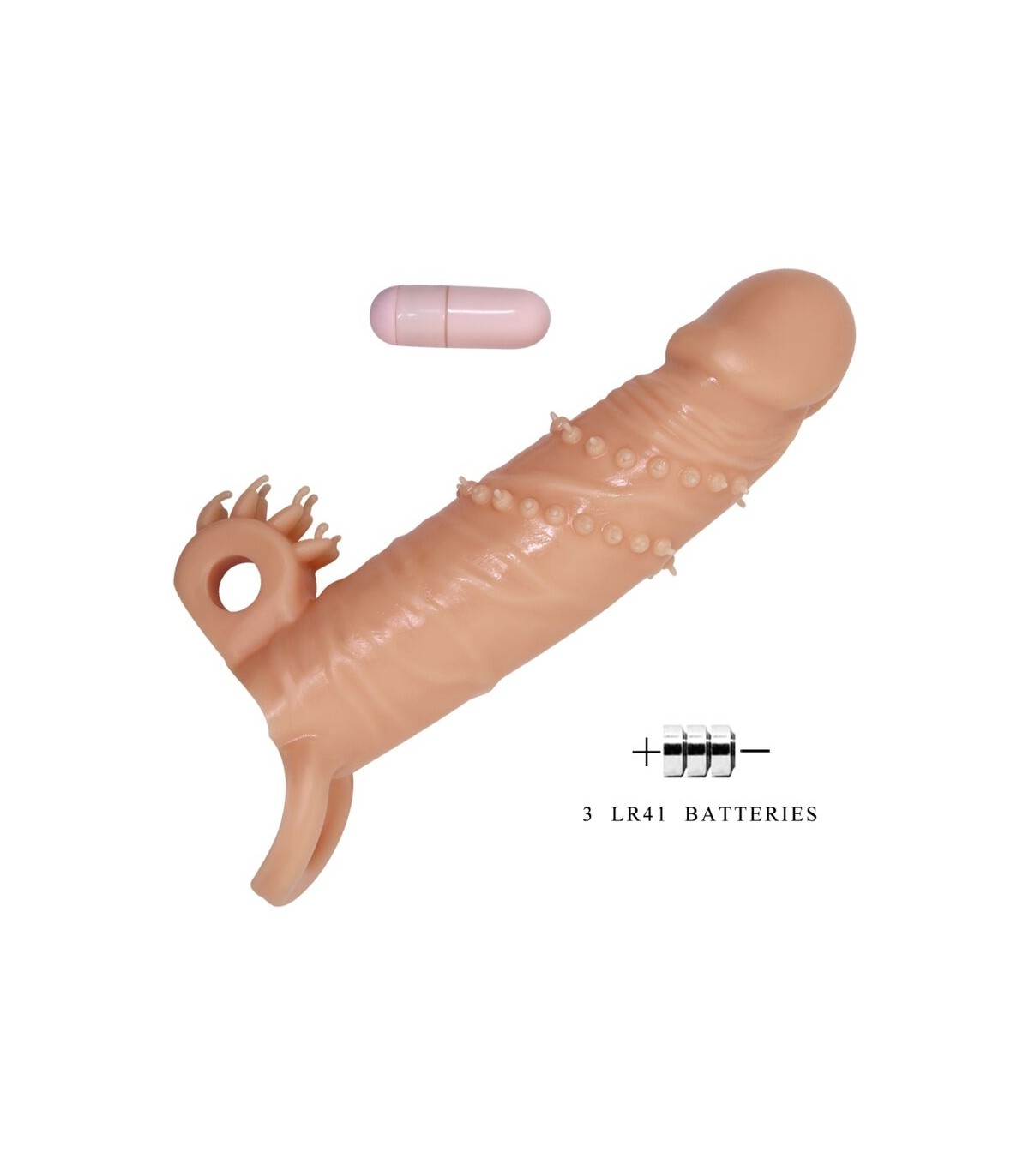 La mejor funda para el pene y extensión para una mayor longitud y un mejor rendimiento sexual Disfrute de las vibraciones y mejore el rendimiento con la funda vibradora para el pene Pretty Love. Esta funda para el pene que mejora la erección y promete placer, de 6,7 pulgadas de largo, está hecha de TPR suave y se fija en su lugar mediante un lazo de bola. Mantiene su erección más dura y duradera por más tiempo, incluye una bala vibradora para estimular a su pareja con cada movimiento. La bala está diseñada para estimular el clítoris con vibraciones que la impulsarán de un orgasmo al siguiente. Esta funda de extensión para el pene tiene una punta sólida para brindarle esa longitud adicional cuando la desee.