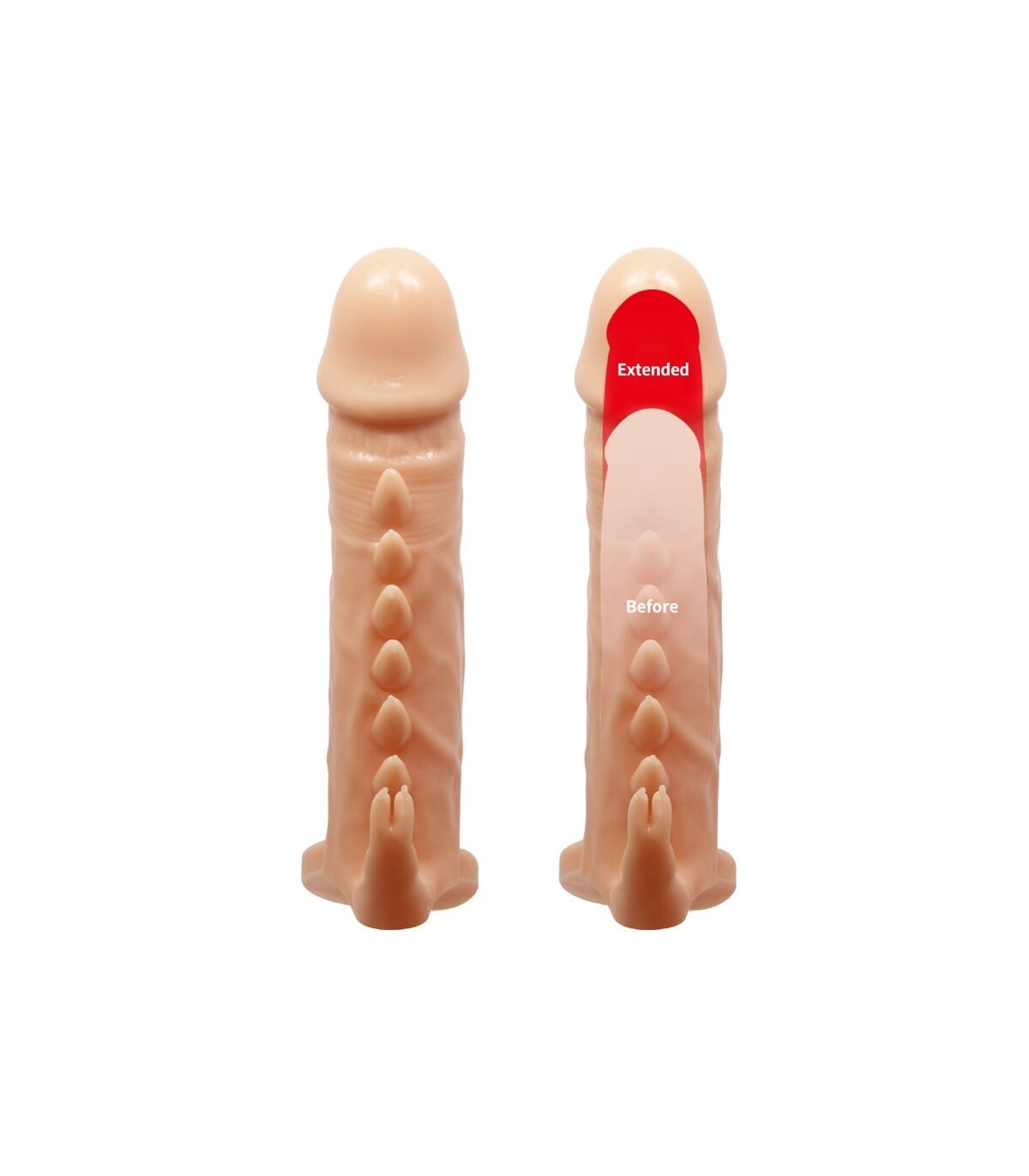 La mejor funda para el pene y extensión para una mayor longitud y un mejor rendimiento sexual Disfrute de las vibraciones y mejore el rendimiento con la funda vibradora para el pene Pretty Love. Esta funda para el pene que mejora la erección y promete placer, de 6,3 pulgadas de largo, está hecha de TPR suave y se fija en su lugar mediante un lazo de bola. Mantiene su erección más dura y duradera por más tiempo, incluye una bala vibradora para estimular a su pareja con cada movimiento. La bala está diseñada para estimular el clítoris con vibraciones que la impulsarán de un orgasmo al siguiente. Esta funda de extensión para el pene tiene una punta sólida para brindarle esa longitud adicional cuando la desee.