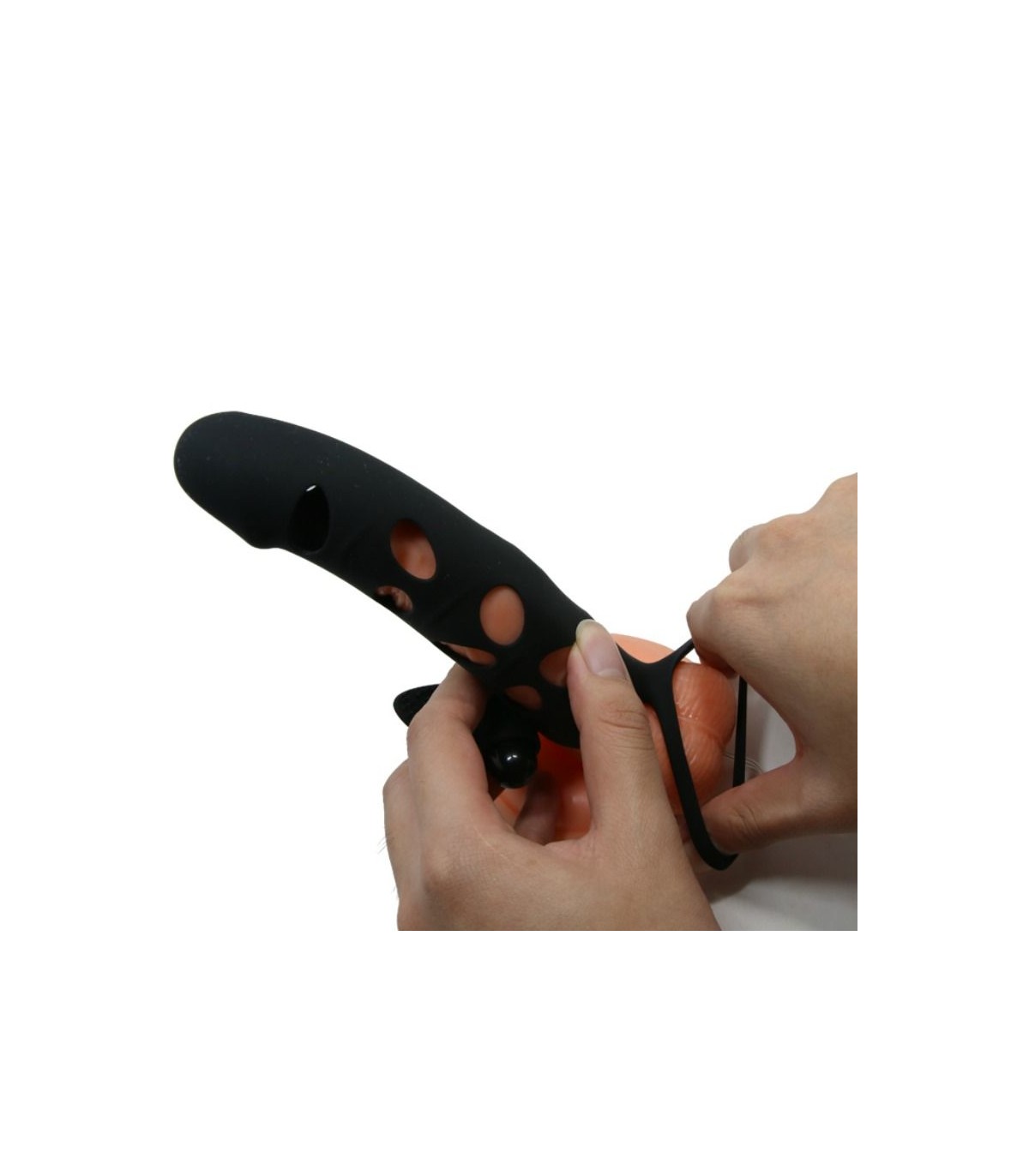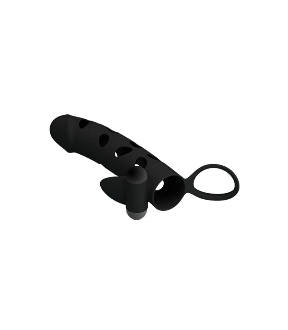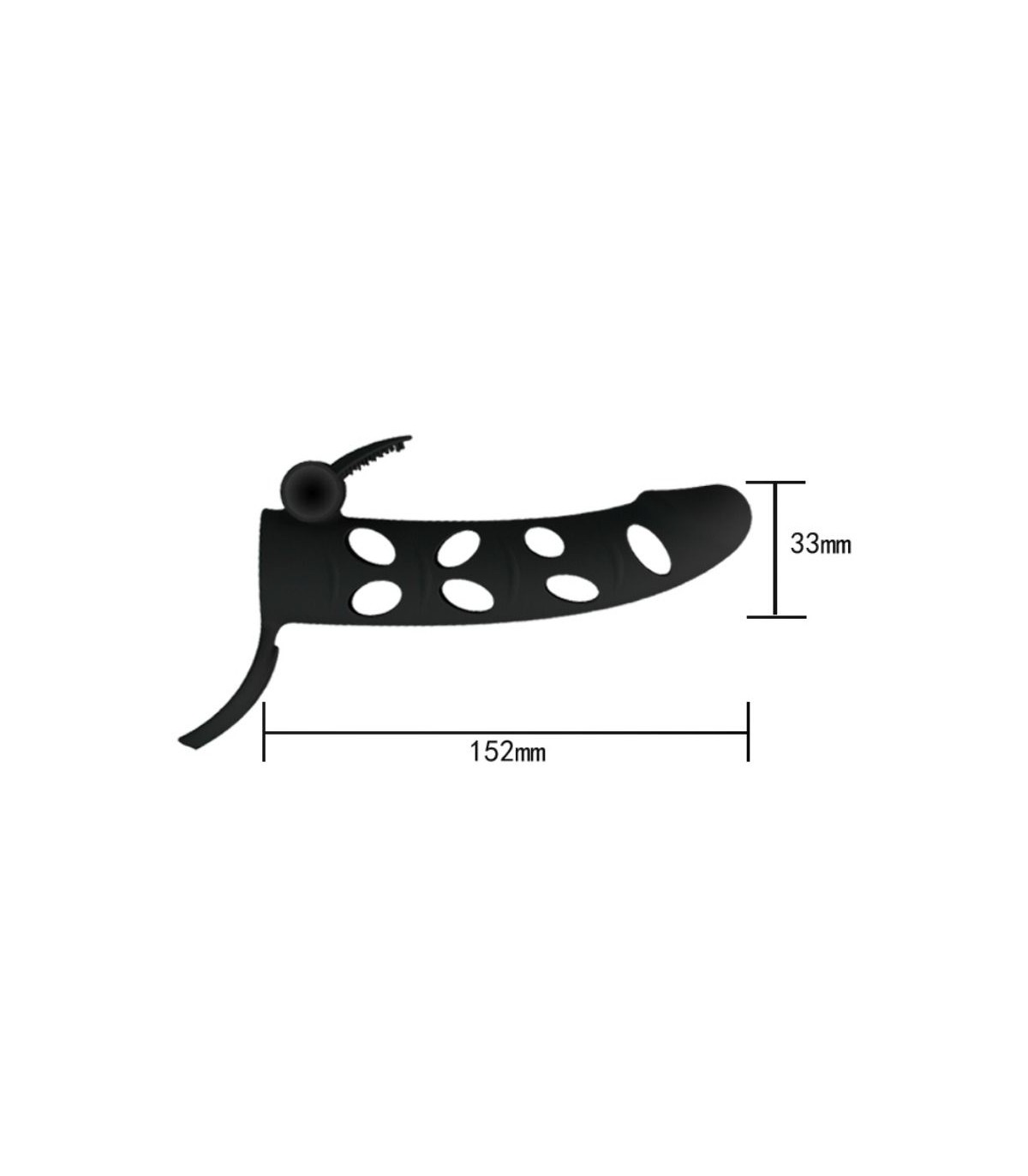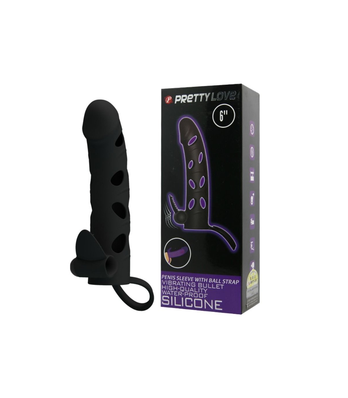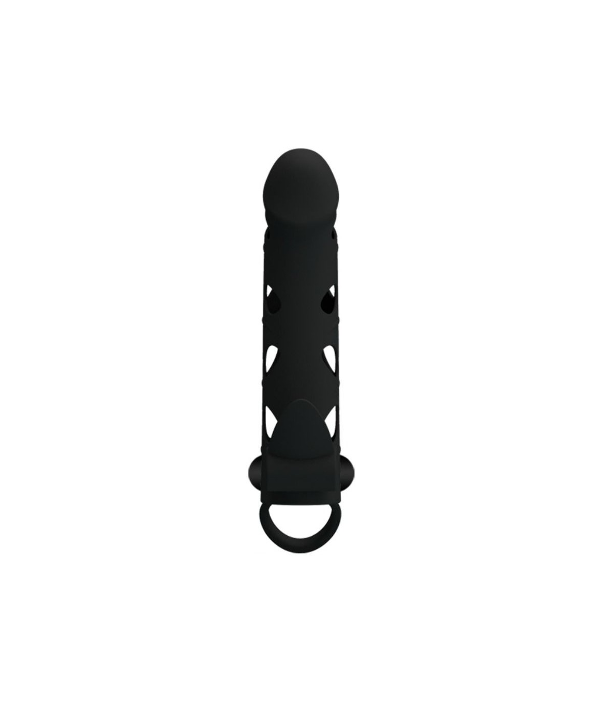 Porque el tamaño si importa, ahora Pretty Love trae esta funda de silicona para que puedas alcanzar hasta los 15.2 cm. Está hecho con silicona de primera calidad, resistente al agua para que puedas usarla en la ducha o spa, con anillo de sujeción en los testículos e incorpora una bala vibradora y texturas a la altura del clítoris con lo que aumentareis el placer en pareja. Además de ganar unos centímetros en longitud y grosor de más, es perfecto para personas con eyaculación precoz o disfunción erectil para poder seguir disfrutando.