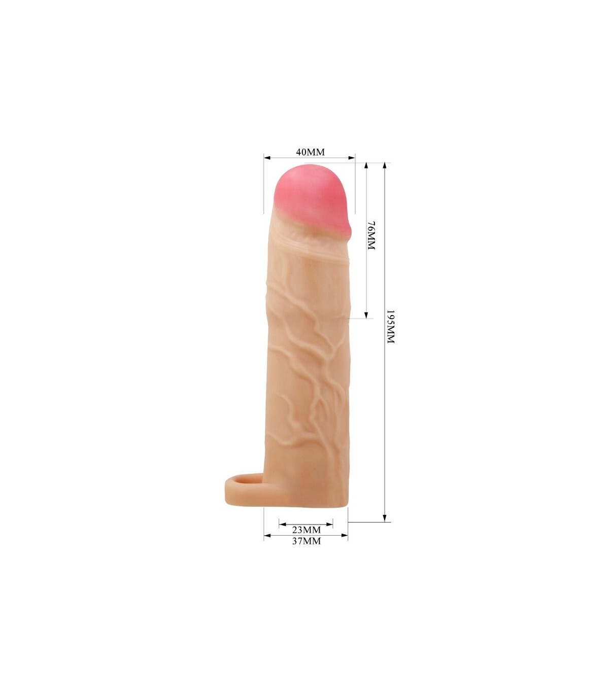 Esta funda para el pene está diseñada para deslizarse fácilmente sobre su pene y brindarle el impulso que desea. También tiene la apariencia de un pene real. Es bueno crear longitud adicional que pueda beneficiarlo a usted y a su pareja.