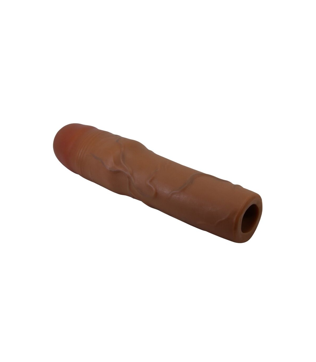 Aumenta el tamaño de tu pene con el extensor de pene de placer. Fabricado con material ultra realista para un placer ultra realista, esta funda te brinda 3 pulgadas adicionales de longitud y un 35 % de circunferencia. La superficie externa está texturizada con venas realistas y presenta una cabeza bulbosa para garantizar que tu amante experimente sensaciones naturales. Un canal interno suave abraza tu erección para un máximo contacto y estimulación.