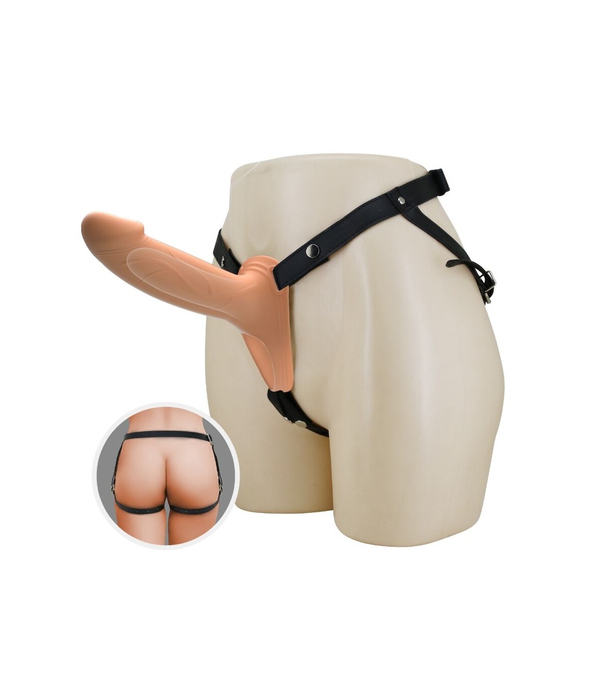 Elegante arnés con dildo hueco de calidad inigualable que puede ofrecer una estimulación de la pareja altamente irresistible.