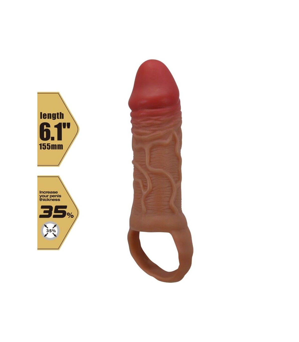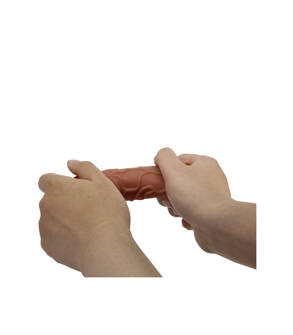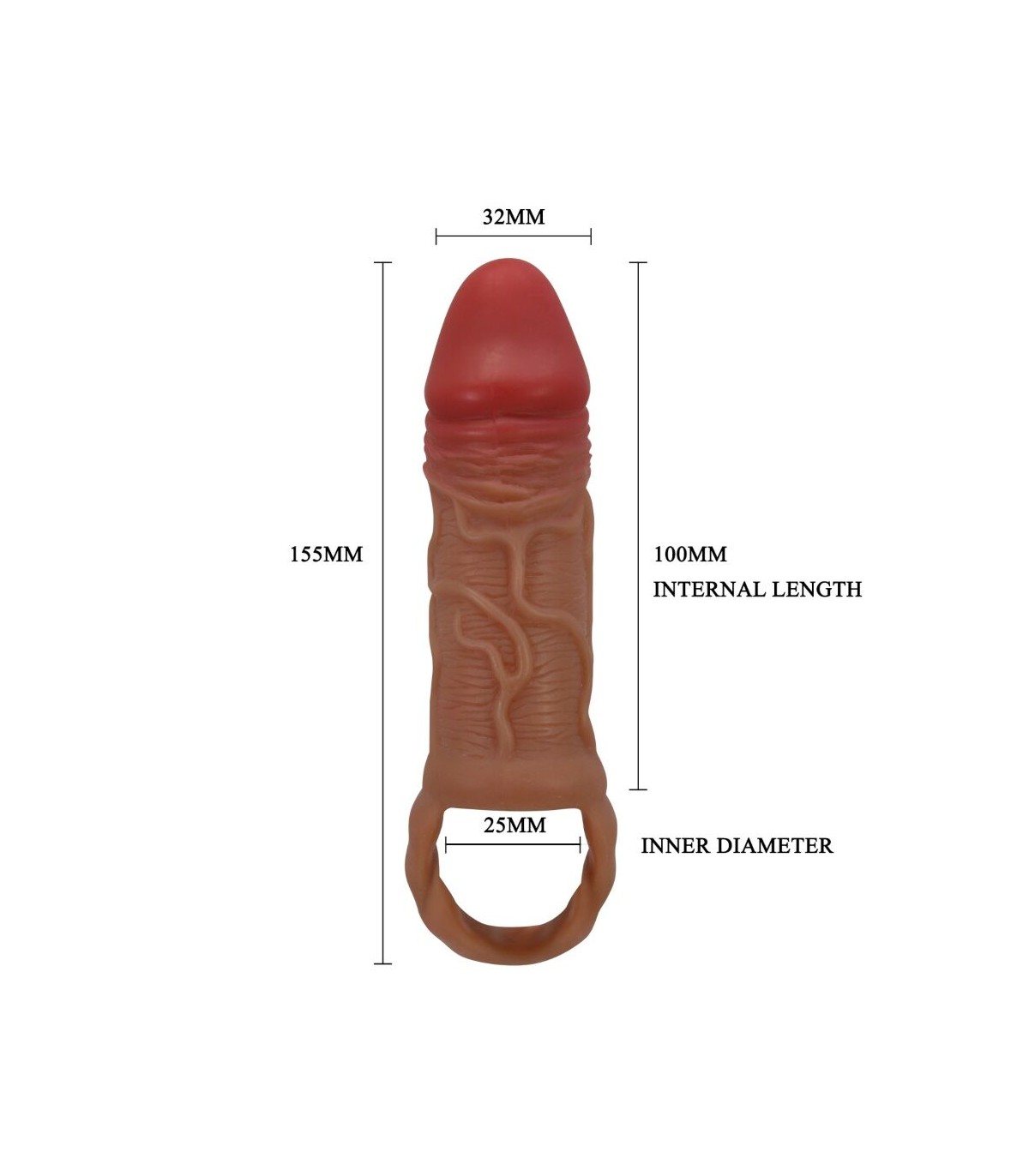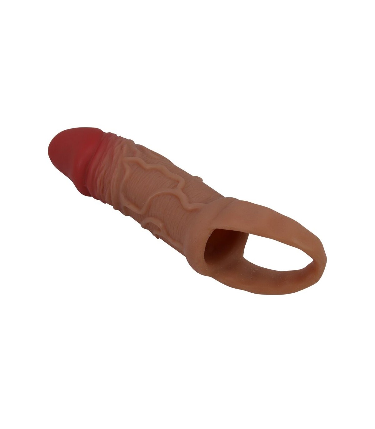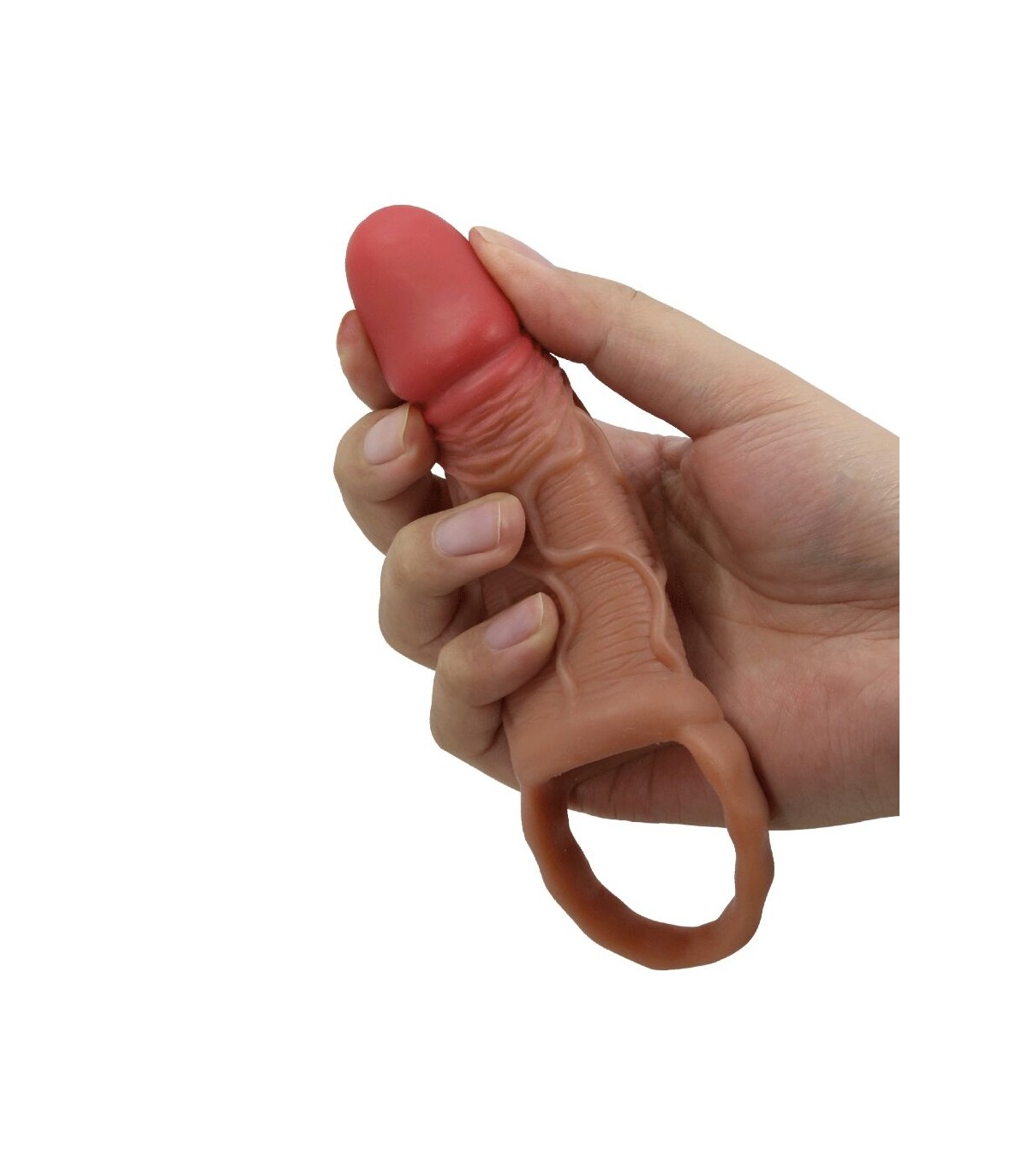Esta funda elástica agrega longitud, circunferencia y textura y se adapta a la mayoría de los tamaños de pene.