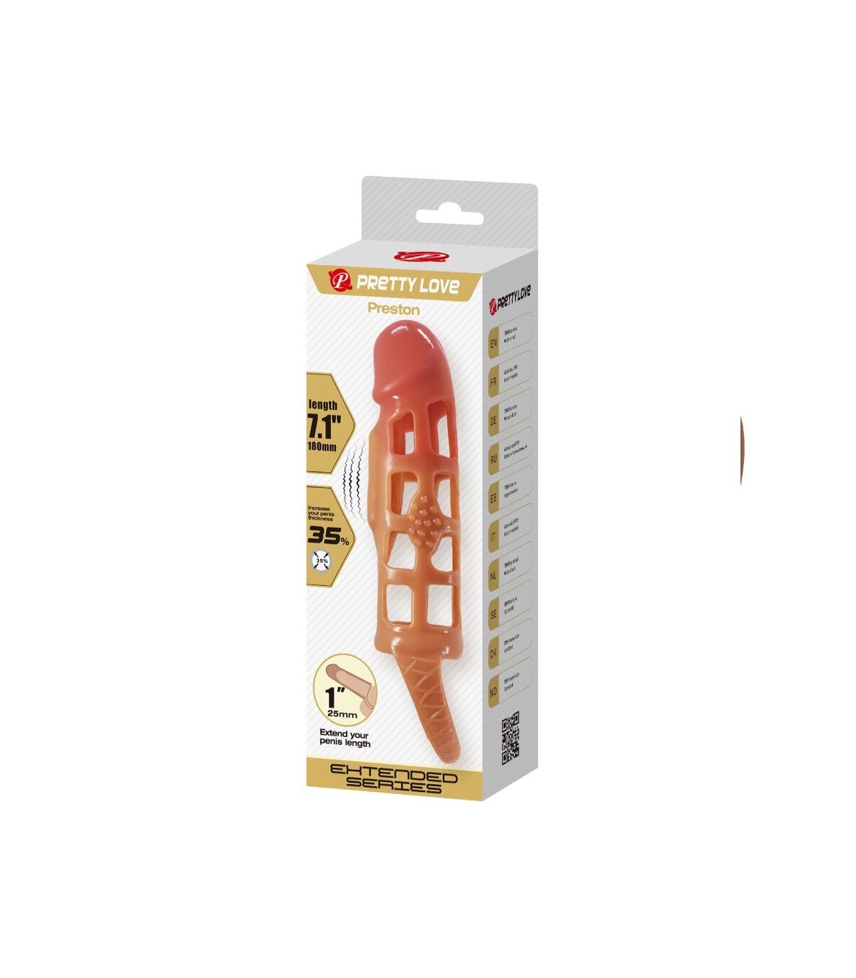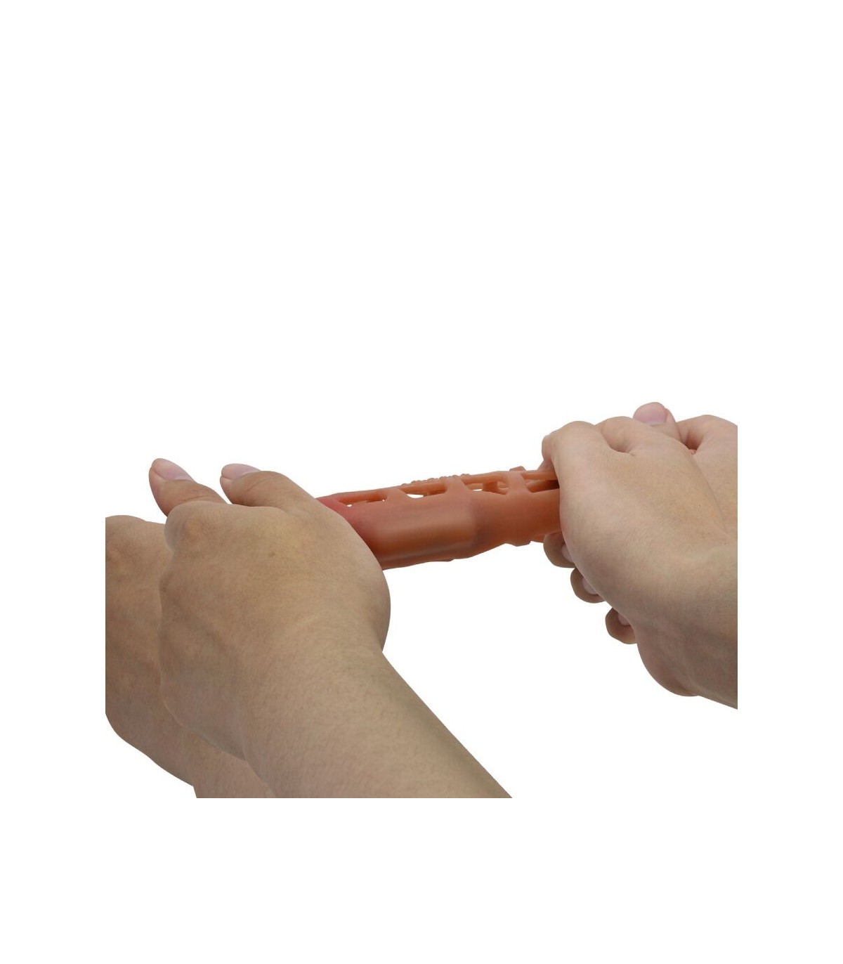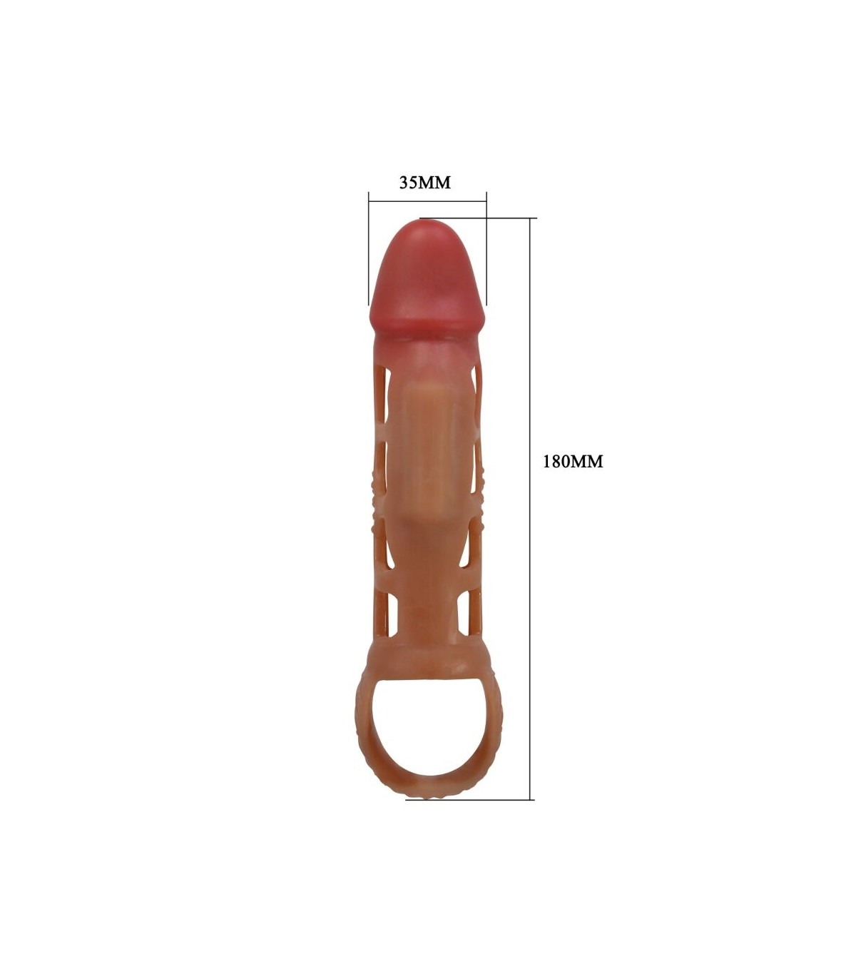 Esta funda elástica agrega longitud, circunferencia y textura y se adapta a la mayoría de los tamaños de pene.