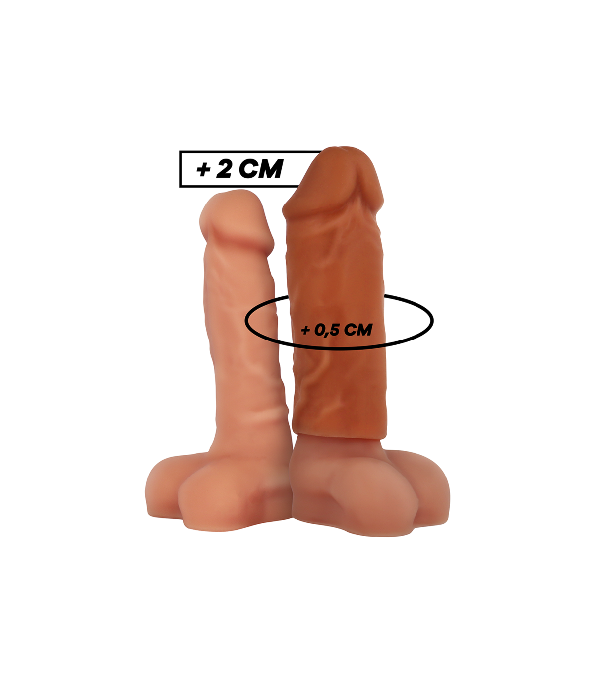 ¡Desliza la manga sobre tu erección y satisface todos sus deseos con tu nuevo tamaño aún más grueso! El material súper suave fabricado 100% en silicona médica, queda como una segunda piel o incluso mejor!