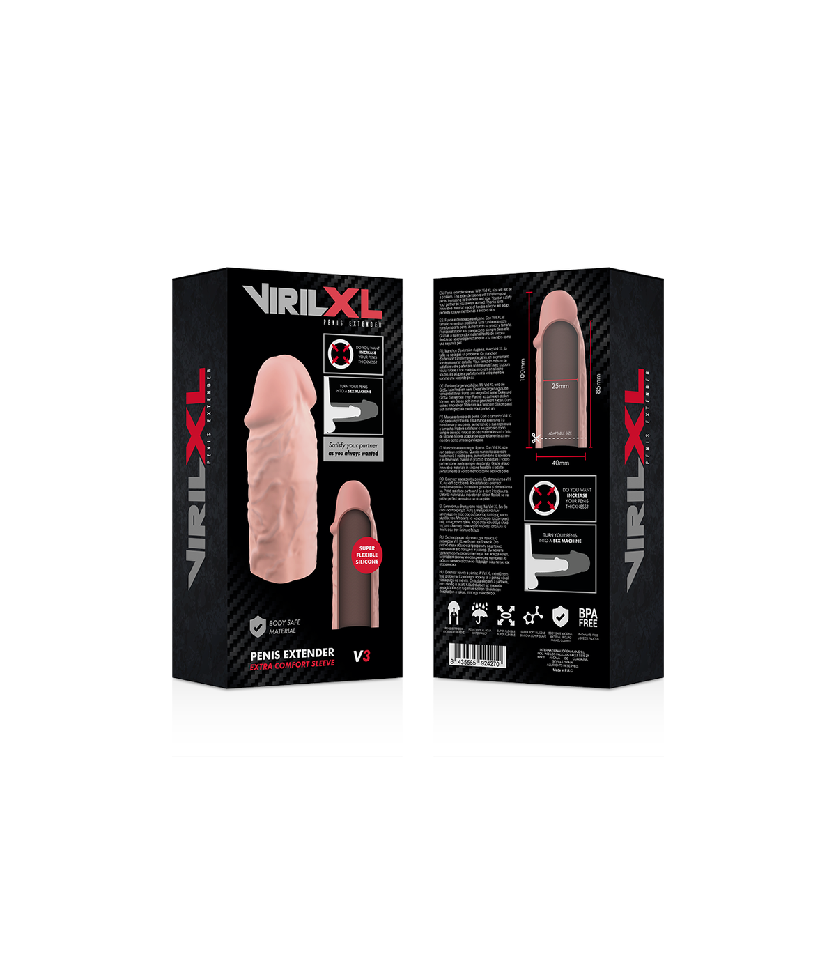 Aumenta tu grosor e intensifica el placer para ambos con esta funda para el pene VirilXL Extensión. Esta suave y elástica manga se puede recortar, para así adaptarse a la mayoría de los tamaños. Simplemente recorta por donde empieza el glande y ya estas listo para la acción. Sentirás cada sensación y tu pareja disfrutará de un nuevo grosor.
