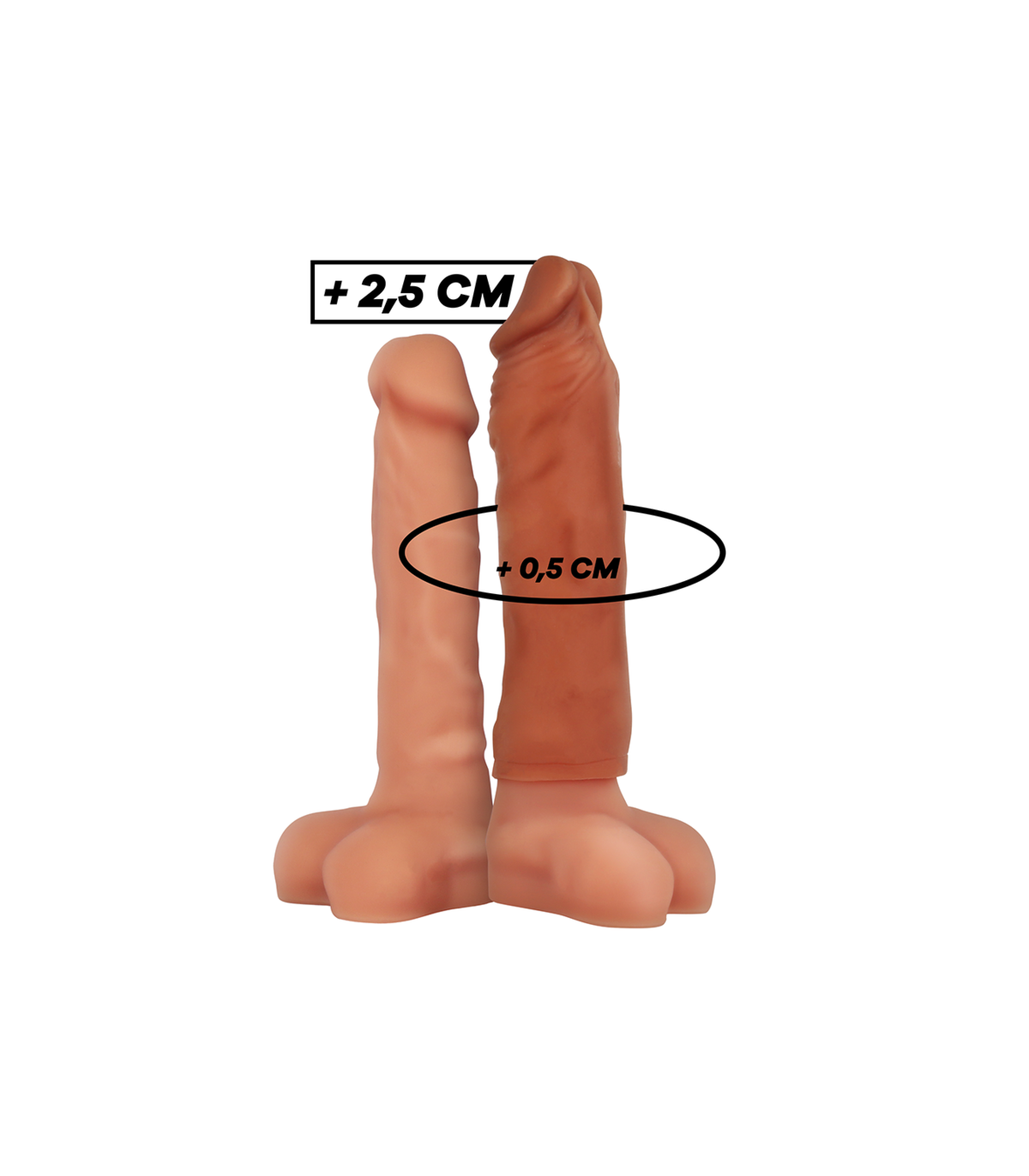¡Desliza la manga sobre tu erección y satisface todos sus deseos con tu nuevo tamaño aún más grueso! El material súper suave fabricado 100% en silicona médica, queda como una segunda piel o incluso mejor!