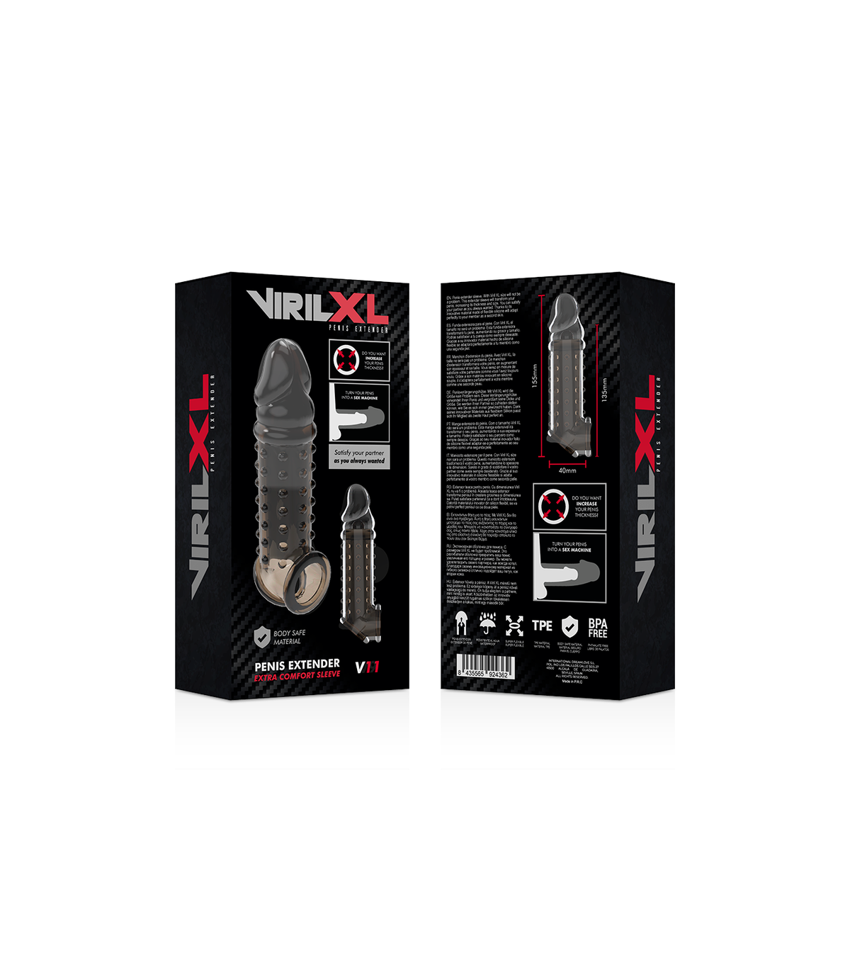 Aumenta tu grosor e intensifica el placer para ambos con esta funda para el pene VirilXL Extensión. Esta suave y elástica manga se puede recortar, para así adaptarse a la mayoría de los tamaños. Simplemente recorta por donde empieza el glande y ya estas listo para la acción. Sentirás cada sensación y tu pareja disfrutará de un nuevo grosor.