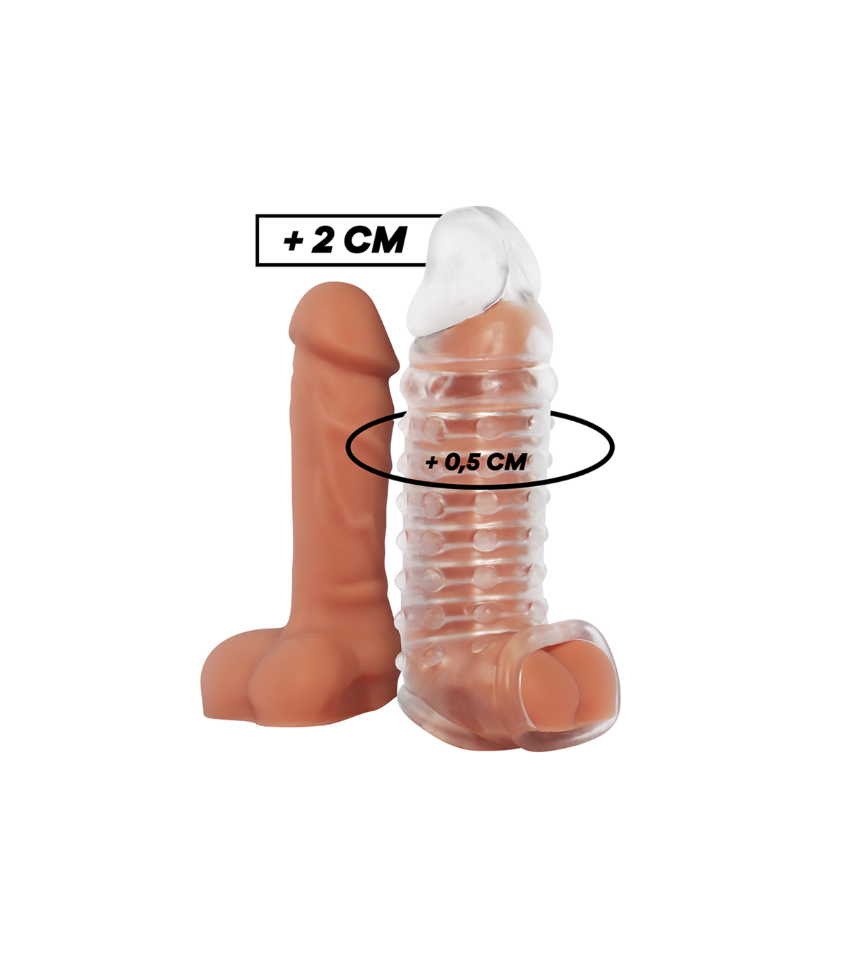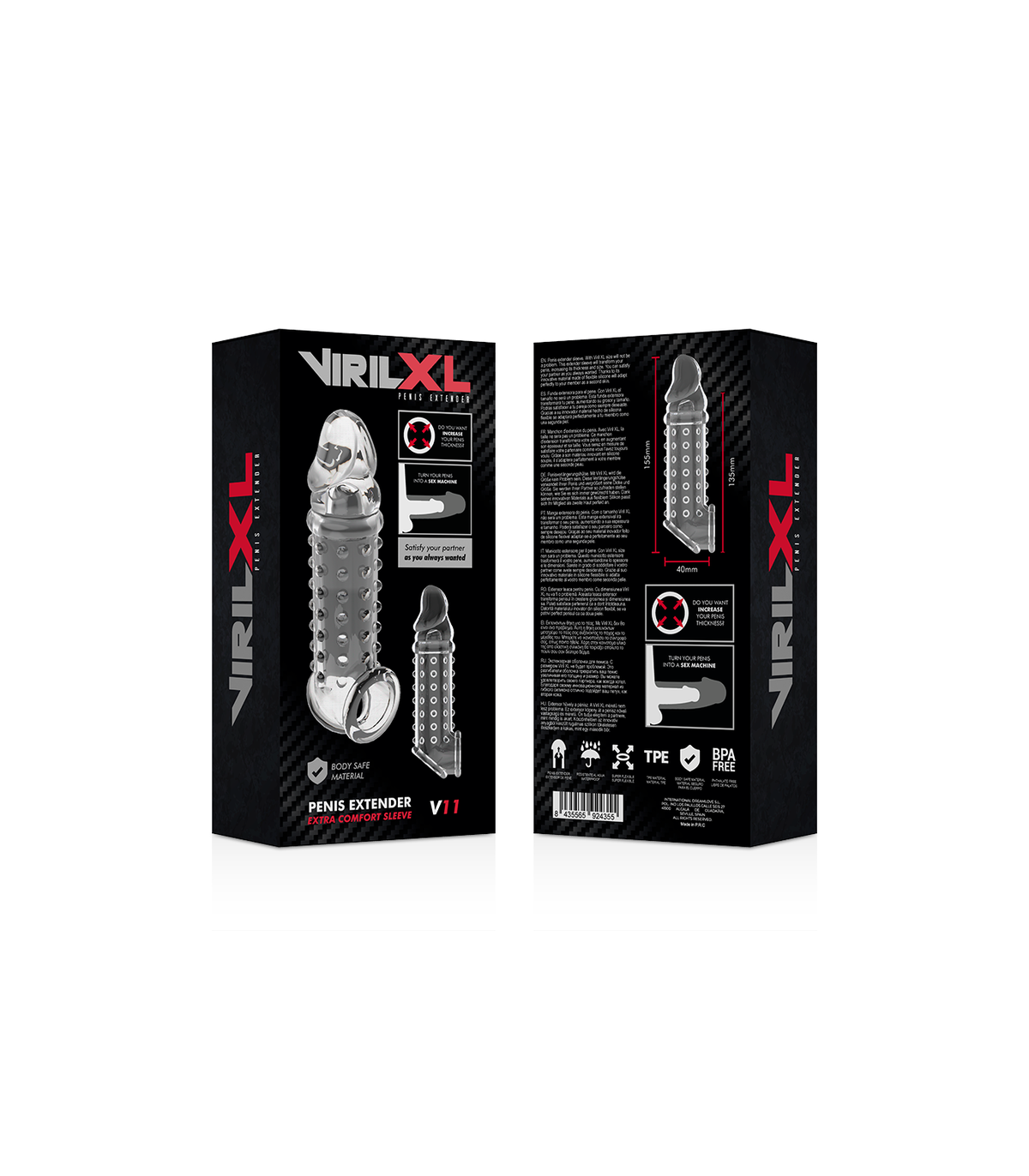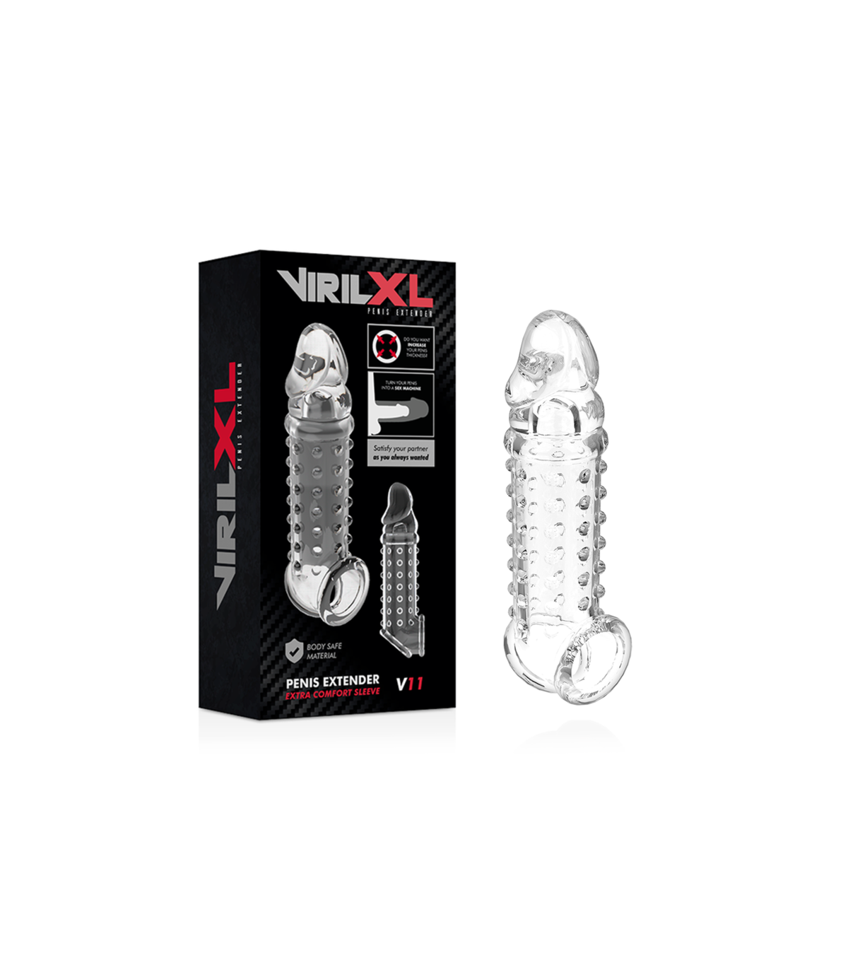 Aumenta tu grosor e intensifica el placer para ambos con esta funda para el pene VirilXL Extensión. Esta suave y elástica manga se puede recortar, para así adaptarse a la mayoría de los tamaños. Simplemente recorta por donde empieza el glande y ya estas listo para la acción. Sentirás cada sensación y tu pareja disfrutará de un nuevo grosor.