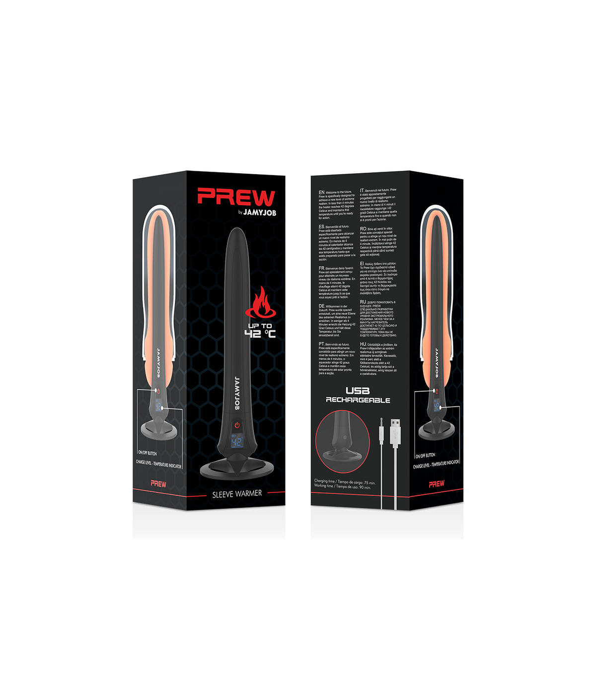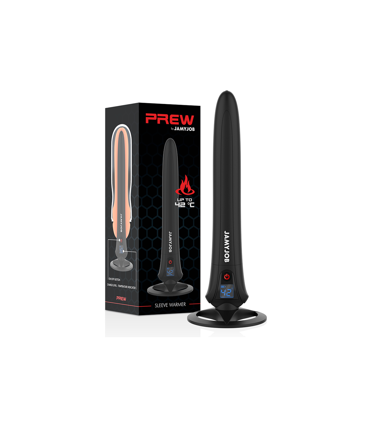 ¿Porque utilizar JAMYJOB PREW sleeve warmer? El dispositivo SleeveWarmer calienta su masturbador JAMYJOB a una temperatura sensual que imita aún más la sensación de una experiencia sexual de la vida real.