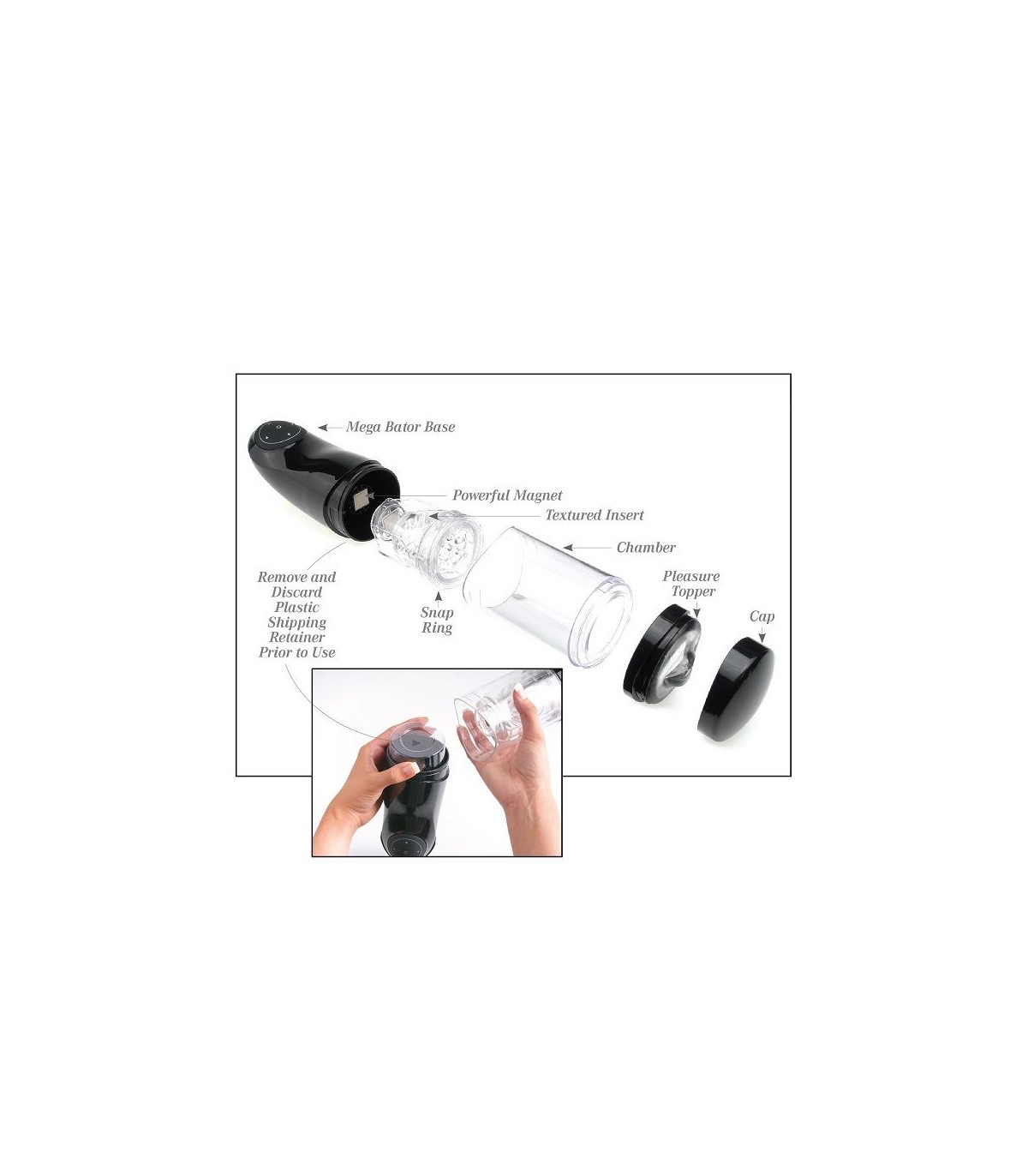 ppPreparate para el mas increible mas intenso y mas avanzado masturbador masculino nunca antes imaginado El vibrante Mega Bator es el masturbador de potencia maxima que hace todo el trabajo por ti A diferencia de los masturbadores ordinarios que apenas se mueven arriba y abajo la vibracion y rotacion avanzada de Mega Bator y el mecanismo de vibracion le da un nuevo giro a la masturbacion masculina ppCombina el movimiento circular con 15 patrones de emocionante vibracion ppDisfruta del sexo sin cables y con manos libres siempre que quieras donde quieras y todo el tiempo que quieras sin ningun tipo de compromiso pulliEl masturbador se adapta a casi todos los tamanos liliResistente al agua Apto para la ducha o Spa liliRecargable via USB liliIncluye adaptador para moviles lilispan styleline height 208pxMedidas Insertables 12 cm x 4 cm ulpDescubre el ultimo innovador juguete masculino pp