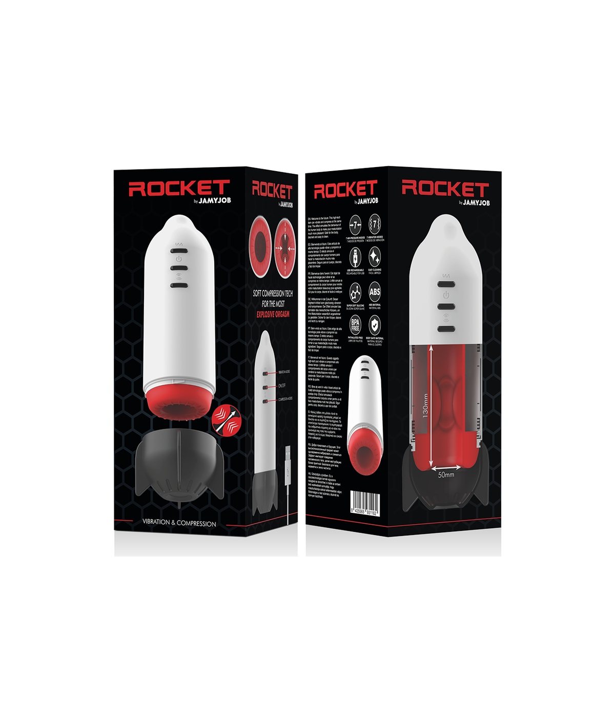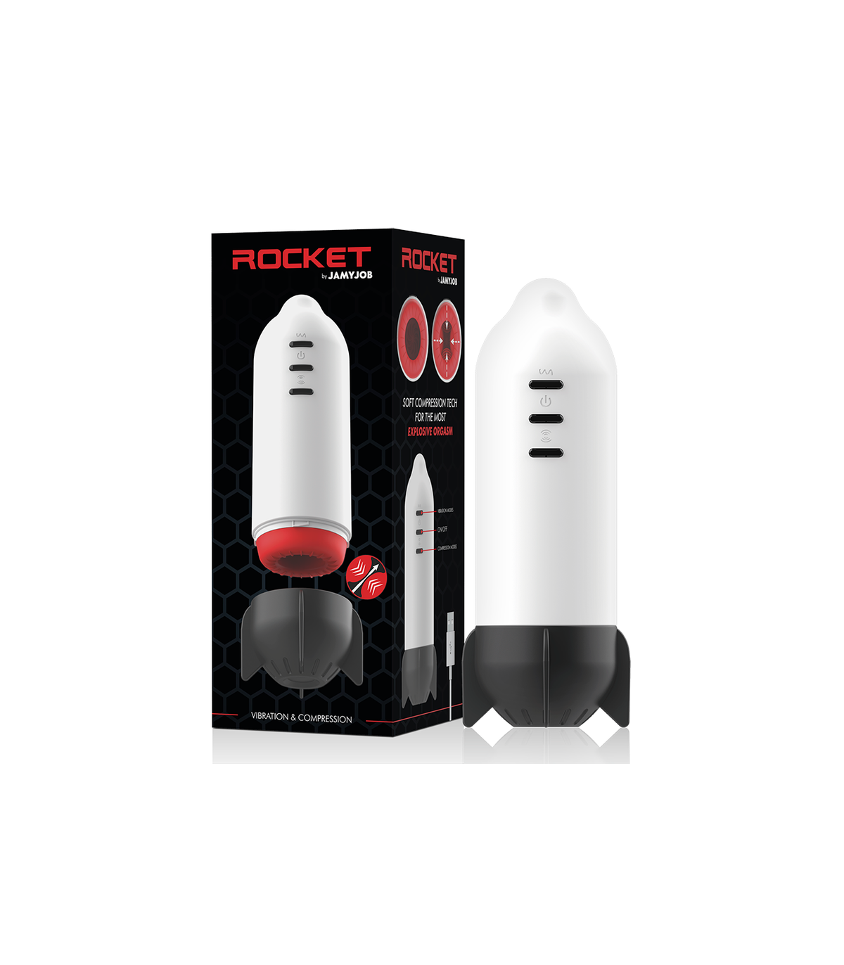 El Rocket es un masturbador masculino para aquellos que deseen vivir experiencias de otro planeta pues este artículo de alta tecnología puede vibrar y comprimir al mismo tiempo. El efecto simula el comportamiento del cuerpo humano para hacer tu masturbación mucho más placentera. Aplica un poco de lubricante base agua (Jamyjob recomienda el uso de los lubricantes Aqua Quality para un deslizamiento eficaz y duradero) y deslizate por su suave manga interior texturada, ahora viene lo mejor... escoge entre sus modos de vibración y compresión y...¡sentirás un placer de otra galaxia!