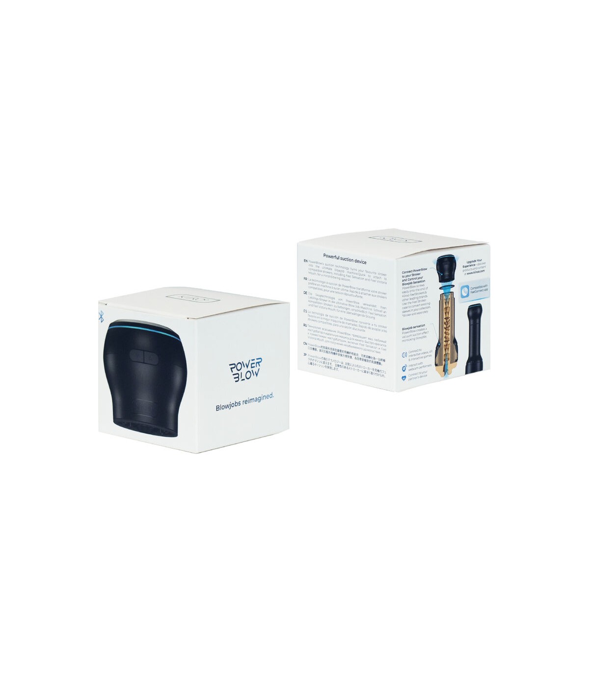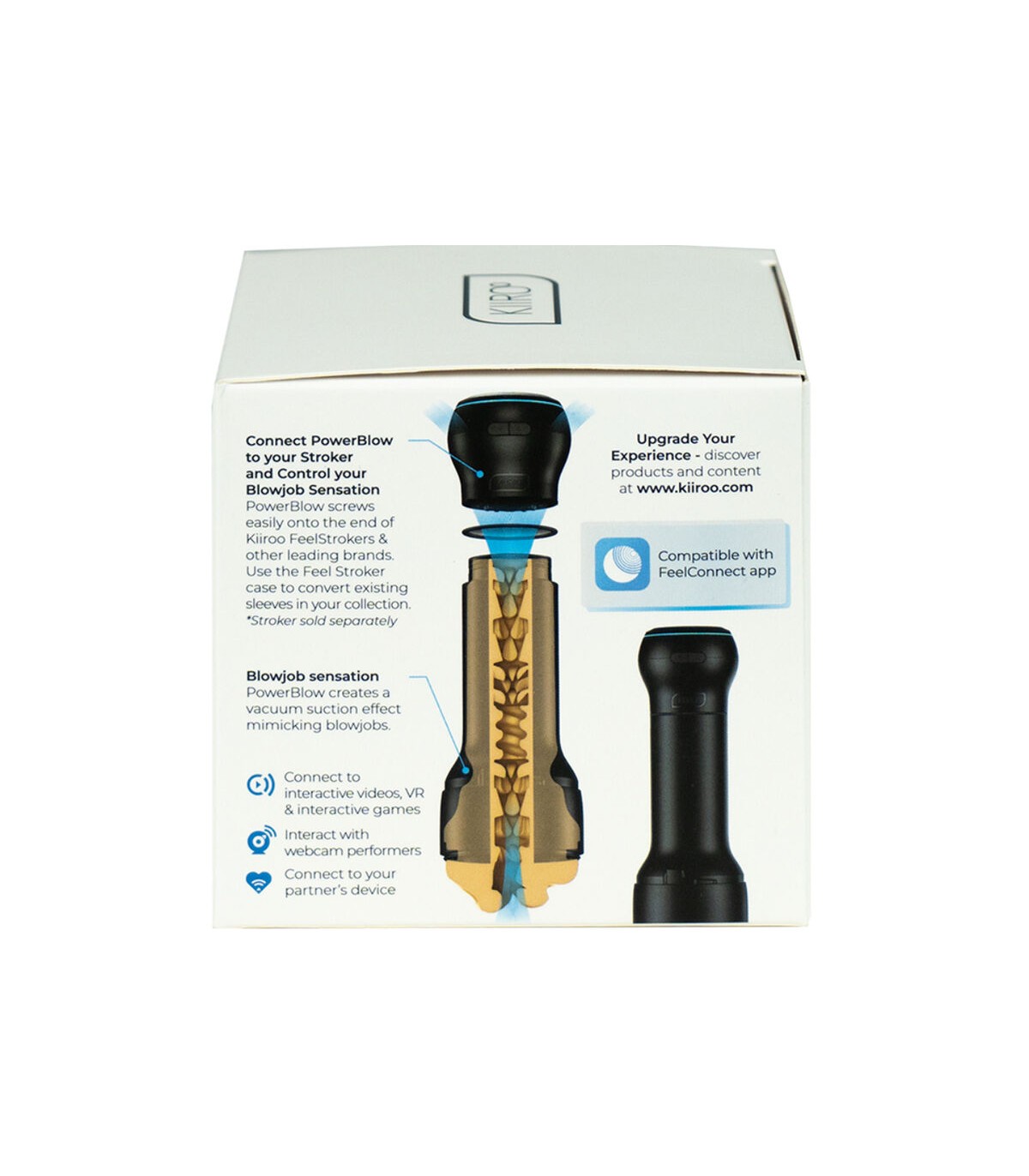 El PowerBlow es un dispositivo de succión interactivo que se coloca en el extremo de los Strokers Kiiroo Feel Stars y otras marcas líderes que utilizan el mismo mecanismo de rosca que los Strokers Feel Stars.
