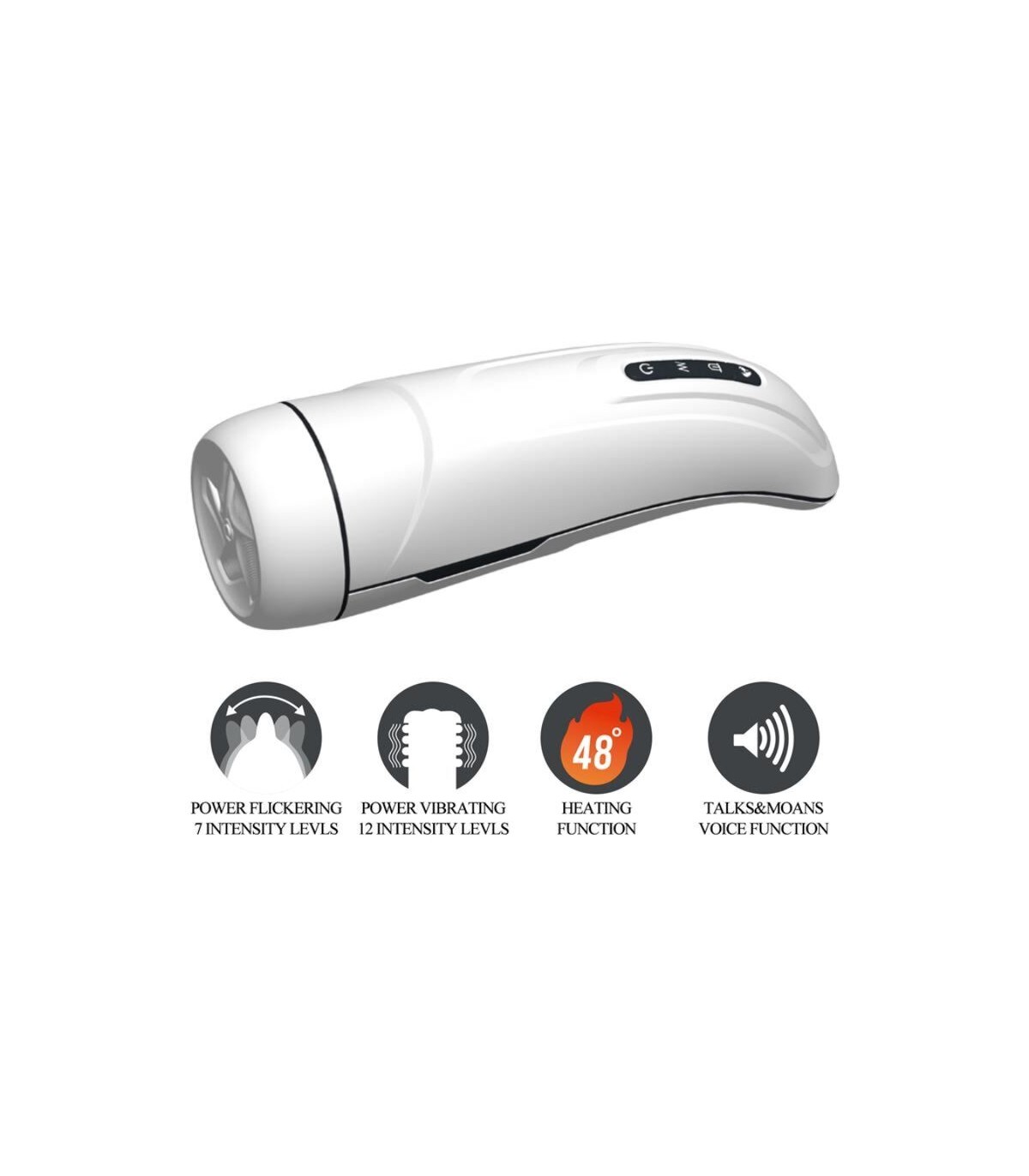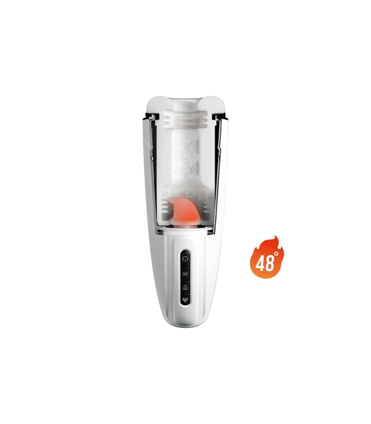 Experimenta el clímax absoluto con este masturbador con vibración, función de calor, sex talk y función Licking. Su interior es sedoso y se calienta hasta llegar a una temperatura natural, mientras que el poderoso motor cuenta con 7 patrones de licking y 12 niveles de intensidad de vibración. El exterior es de fácil agarre para poder encontrar la posición perfecta para un clímax inolvidable.