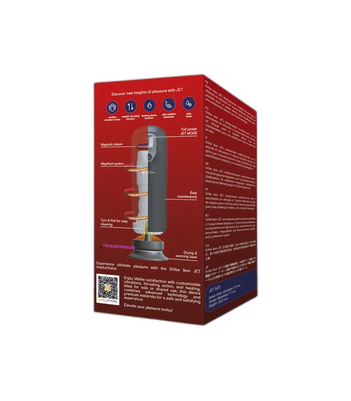 El SVibe Ikon JET incorpora una base calefactable que imita el calor corporal, elevando el nivel de realismo y aportando una sensación más natural e inmersiva. Además, esta base cuenta con función de secado, facilitando el mantenimiento del dispositivo y asegurando una higiene óptima tras cada uso.
