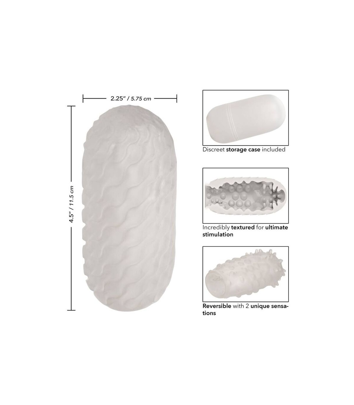 El placer interminable está en tus manos con el increíble stroker nubby reversible ilimitado. El stroker premium se complace en su placer con la estimulación con textura reversible, el diseño cerrado y el conveniente estuche de almacenamiento. Morve y complete con el diseño reversible único, que incluye una superficie de ondulación suave y un patrón de broma para sensaciones de acarreo únicas. Esperamos una experiencia de placer explosiva, mientras que el diseño cerrado ofrece una succión superior. Ya sea que se entregue en casa o donde sea que el placer lo lleve, el diseño compacto de 4.5 11.5 cm y el caso conveniente hacen que este sea el compañero de viaje que está ansiando. El TPR Premium no es sin perfume, es libre de ftalato y sin mantenimiento para mantener sus puntos más sensibles, felices y saludables. >