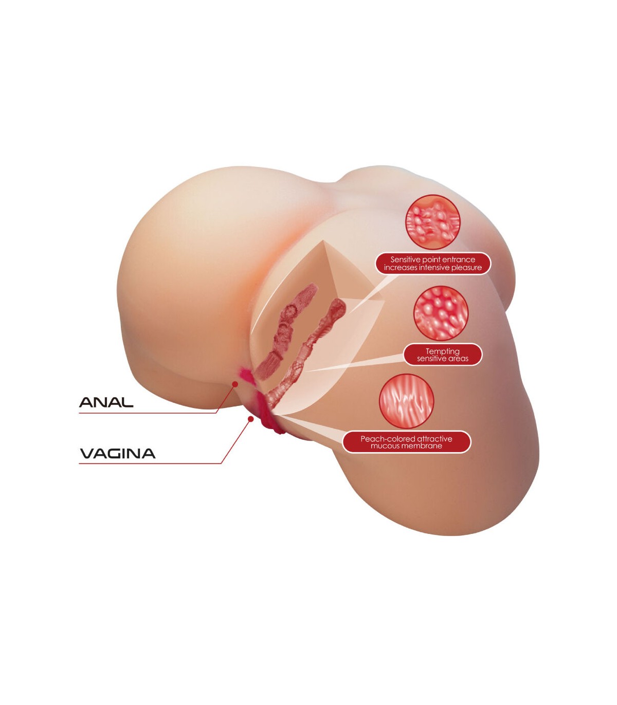 Este masturbador cuenta con dos entradas realistas: una vagina estrecha, retorcida y llena de nervaduras internas que estimulan cada movimiento, y un ano ajustado para quienes buscan un desafío extra de presión y realismo. Su túnel interno está recubierto de texturas en espiral y nódulos de placer estratégicamente colocados para intensificar cada penetración y llevarte a clímax más profundos.