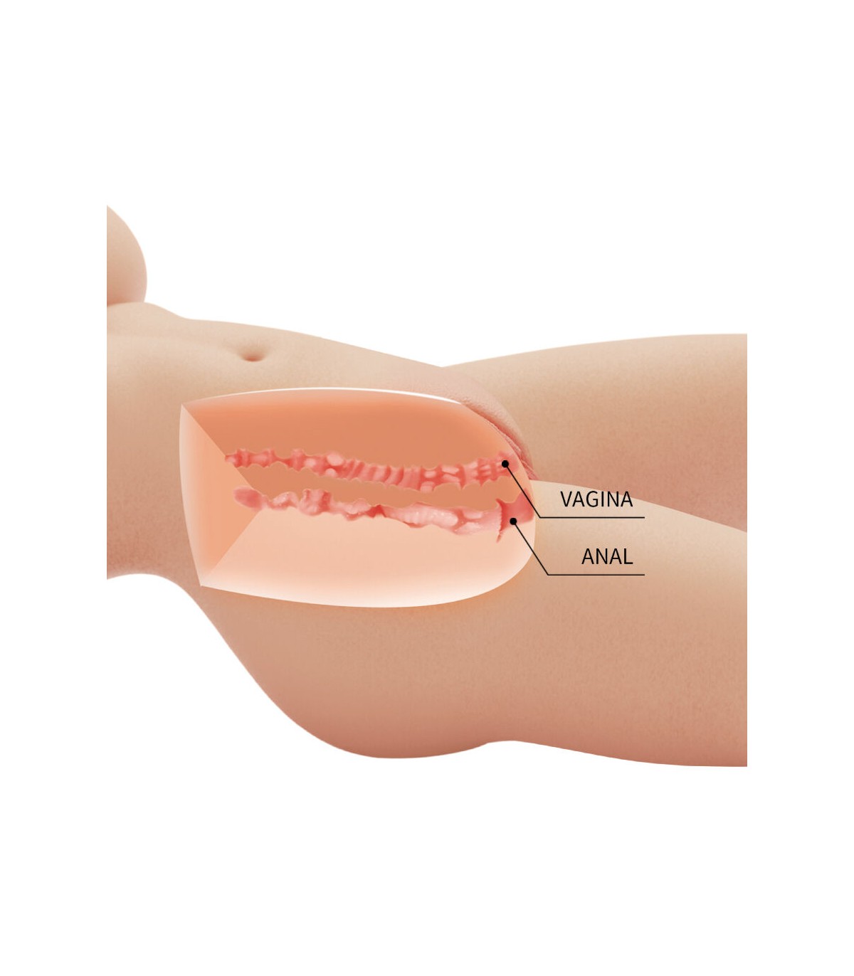 El diseño de Tiffany representa a una mujer madura con curvas irresistibles, que destacan por su feminidad y sensualidad. Sus grandes pechos redondos, su trasero firme y elástico y su cintura delgada crean una silueta perfecta que invita a disfrutar de cada detalle. La estructura interna está cuidadosamente esculpida para permitir que sus piernas se deslicen y se adapten a distintas posturas, brindando la posibilidad de explorar diversas posiciones de manera realista y cómoda. Fabricado en TPR de alta calidad, este masturbador ofrece una textura suave y agradable al tacto, totalmente segura para el cuerpo. Sus dos orificios independientes (vaginal y anal) han sido diseñados anatómicamente para proporcionar una estimulación intensa y realista, con una sensación fisiológica auténtica que imita fielmente la intimidad femenina.