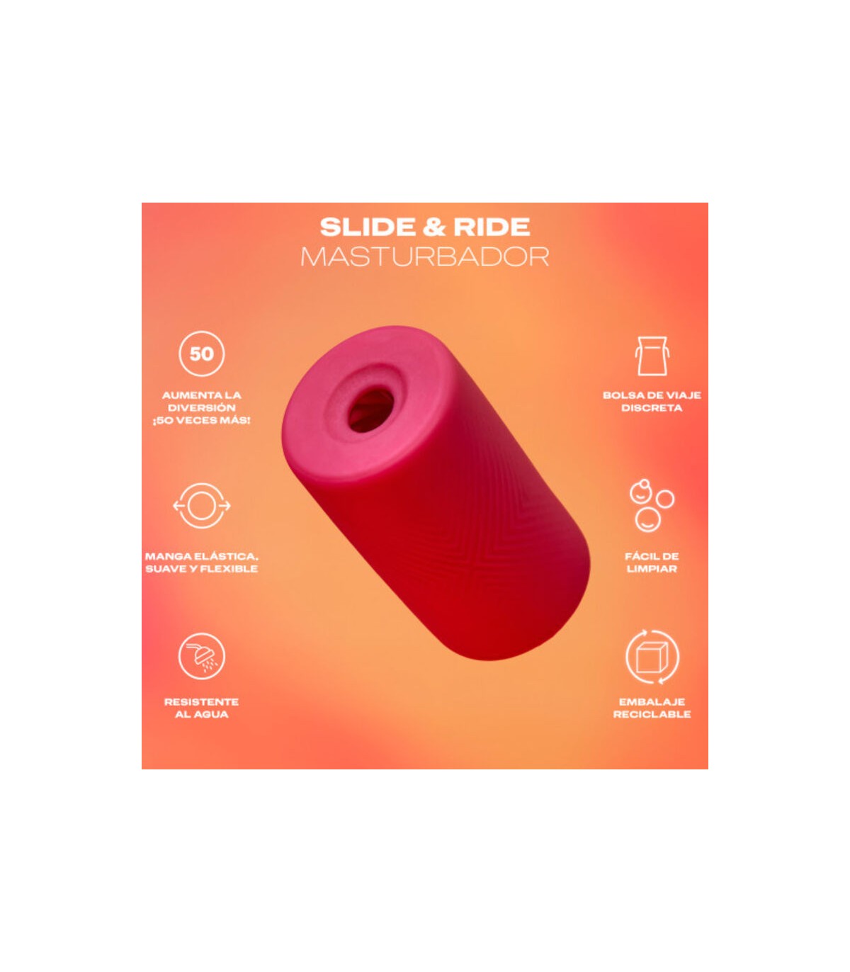 Masturbador DUREX Slide & Ride - Este masturbador masculino está diseñado para aumentar la diversión, ya que es elástico, suave, flexible y texturizado con crestas, lo que proporciona la sensación de un acompañante, sin dejar de tener todo el control para moldear la manga masturbadora como más te guste.
