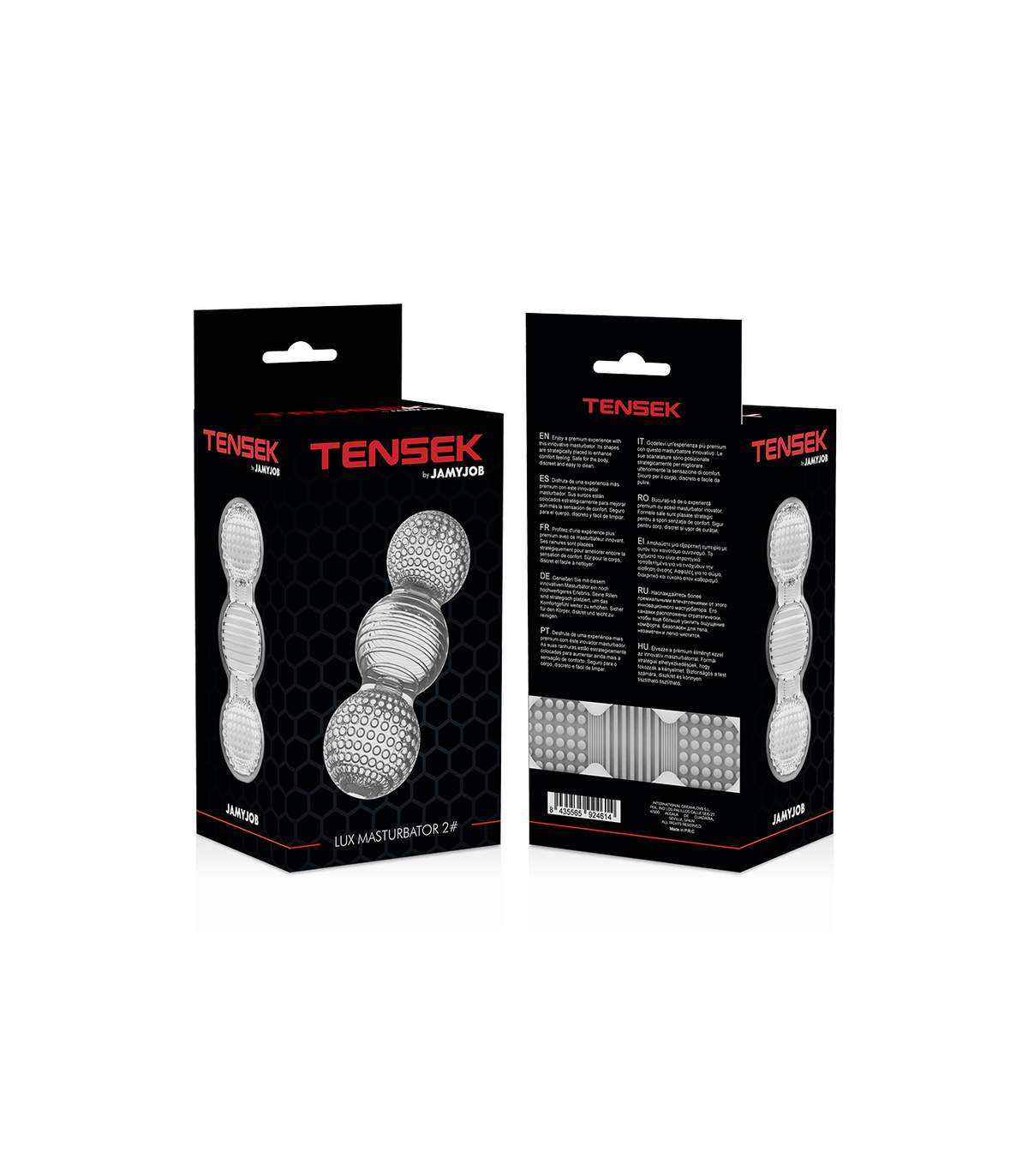 Disfruta de una experiencia completamente nueva. El innovador modelo TENSEK 2 se une a la línea JAMYJOB de masturbadores y presenta un diseño único completamente transparente que no deja nada a la imaginación.