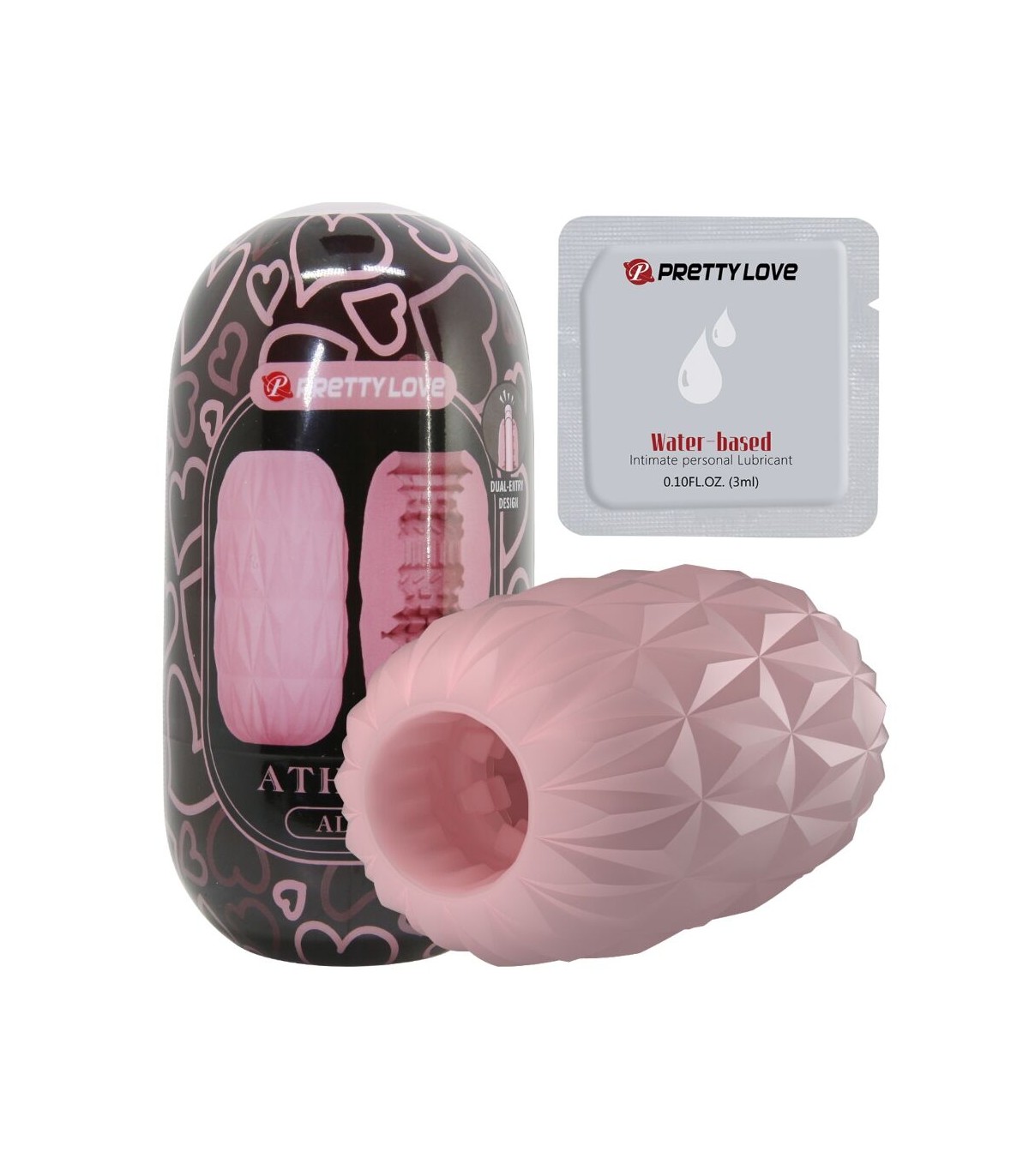 El huevo masturbador ATHENA de Pretty Love está hecho de TPR súper elástico que es fácil de acariciar y girar alrededor de ti. El exterior presenta una textura ondulada que proporciona un agarre seguro en tus dedos mientras juegas con el masturbador, o puedes darle la vuelta al huevo para cambiar a la textura única del interior. Aprieta el material tan fuerte como quieras para intensificar las texturas o ve con cuidado para sentir cómo la textura se desliza suavemente por toda tu erección.