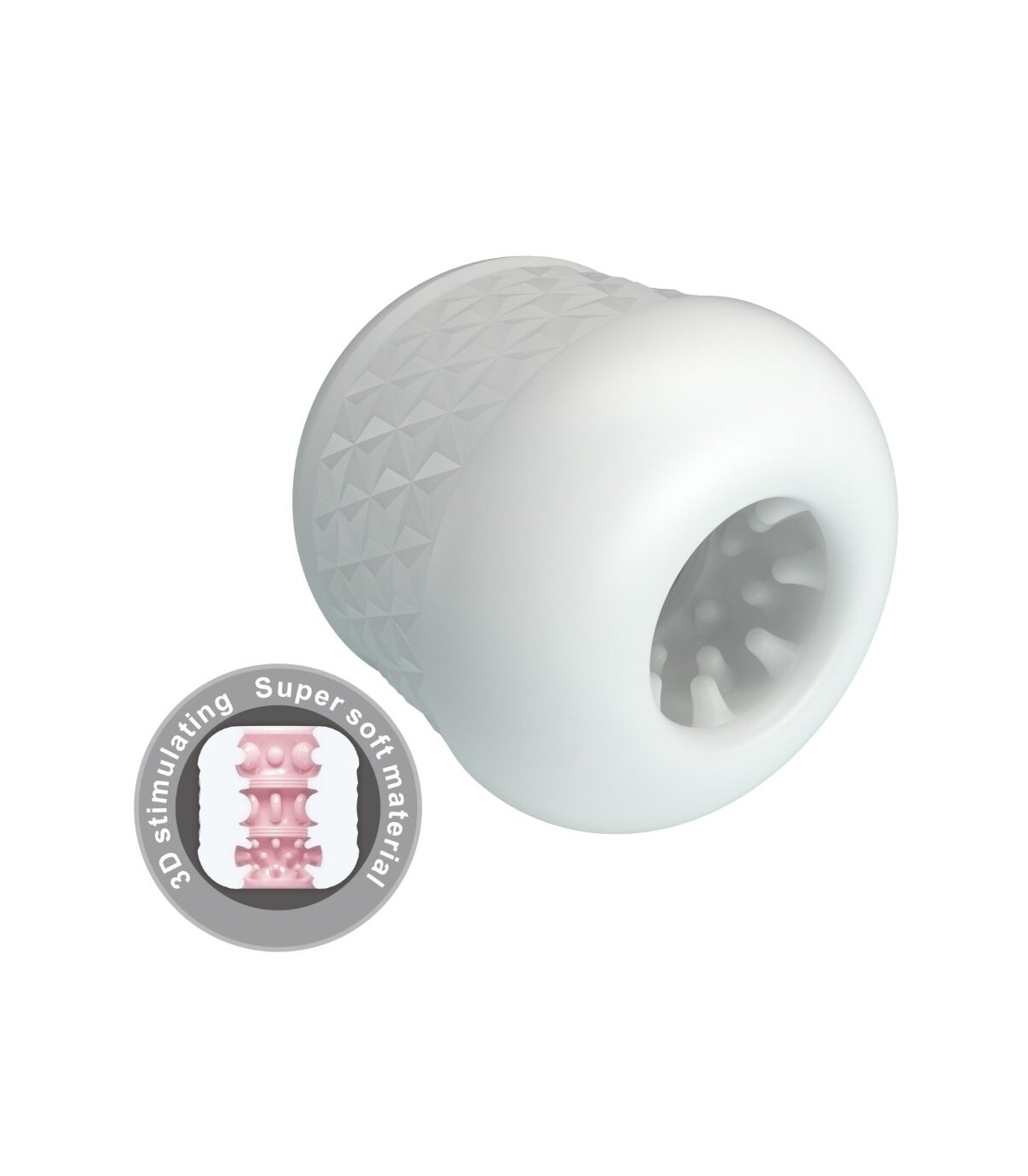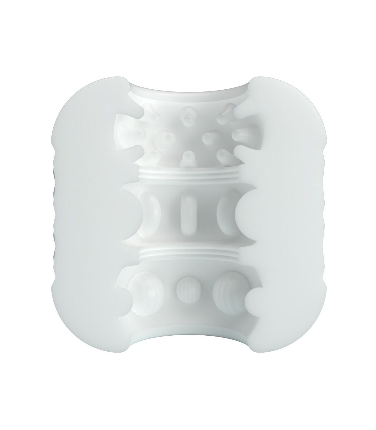 Prueba este masturbador supersuave único con sus entradas de doble cara que dan acceso a las docenas de sensores suaves y elásticos que recubren el cómodo canal interior texturizado. El canal texturizado y los sensores de placer están diseñados para acariciar y acariciar hasta que estés listo para una explosión de placer fenomenal. Resistente al agua y fácil de limpiar.
