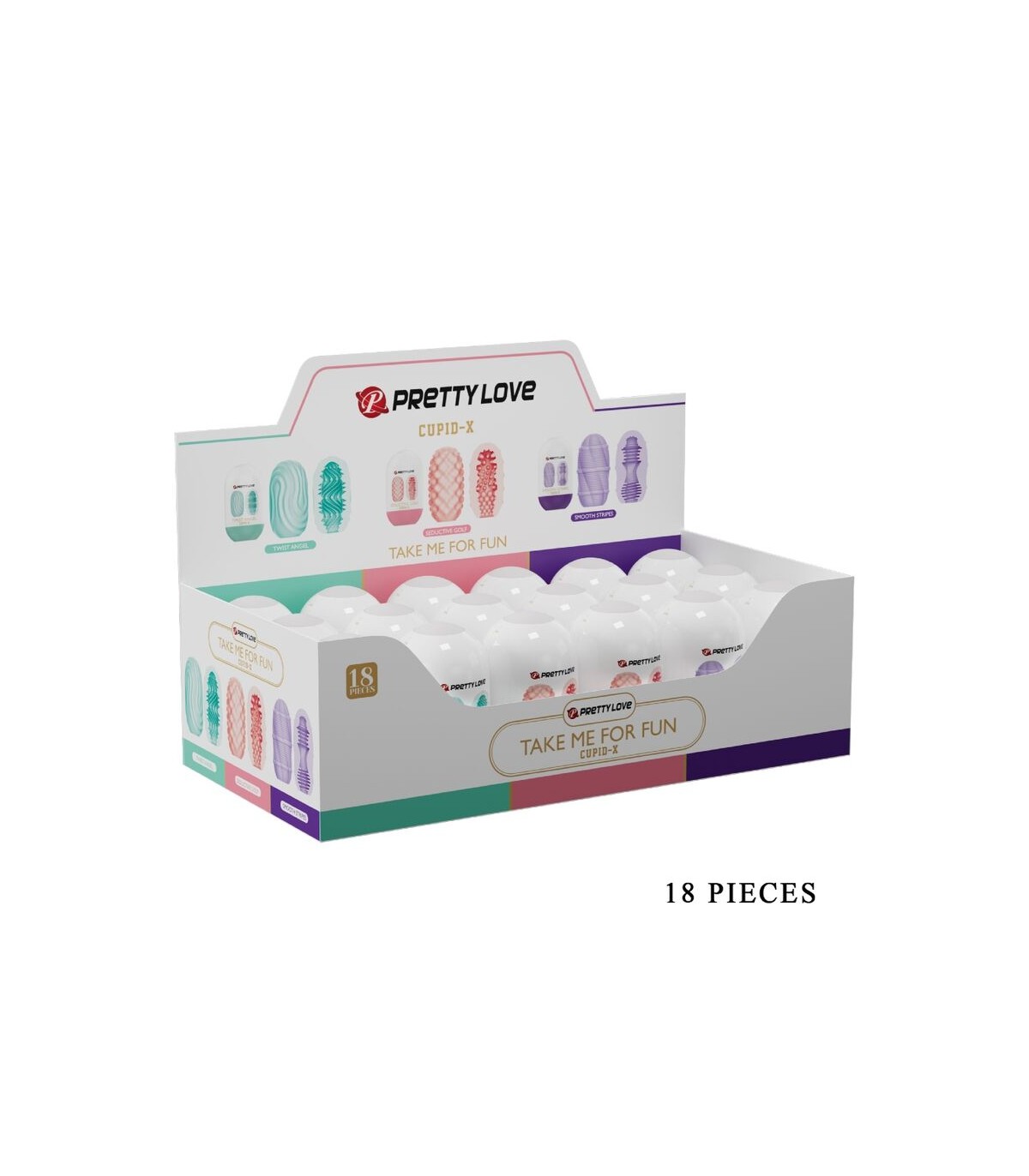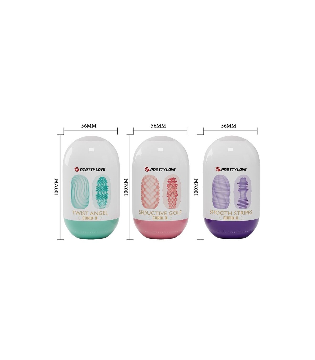 La innovadora funda está lista para acariciarte y masajearte hasta alcanzar un poderoso clímax. Este artículo viene con 3 diseños de superficies diferentes, 3 colores diferentes y 3 túneles individuales. Abre el discreto empaque de CUPID X y disfruta de una gran cantidad de nuevas sensaciones con las texturas internas sutilmente estimulantes. Fabricado con material súper elástico libre de ftalatos para adaptarse literalmente a cualquier tamaño de pene, CUPID X es una fantástica introducción a los juguetes y los entusiastas lo disfrutarán. Simplemente lubrícate e inserta tu pene en el estrecho orificio en la parte inferior del masturbador antes de estirar este revolucionario masturbador por toda la longitud de tu eje. ¡Colecciónalos todos! ¡La doble cara de cada CUPID X te brinda diferentes sensaciones!