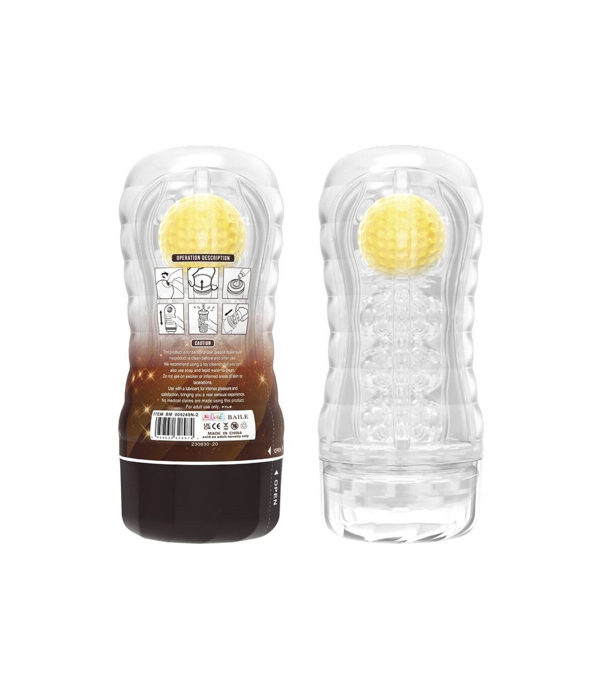 Disfrute de un placer profundo y satisfactorio con esta copa masturbadora con ruedas. Este fantástico juguete masculino te brindará una experiencia mucho más de lo habitual. Los puntos de entrada ultrarrealistas y las mangas internas acanaladas y estriadas crean una experiencia de penetración perfecta, mientras que el diseño de bola rodante le brinda máximas sensaciones. Disfruta del canal interior texturizado hasta alcanzar una intensa liberación orgásmica.
